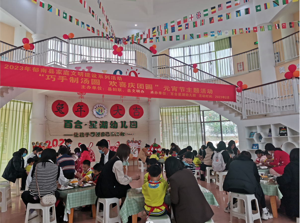 為深入貫徹落實習(xí)近平總書記關(guān)于家庭家教家風(fēng)建設(shè)的重要論述,弘揚和傳承中華優(yōu)秀傳統(tǒng)文化,培育和踐行社會主義核心價值觀,推進(jìn)家庭文明建設(shè)。2月3日,郁南縣婦聯(lián)、縣文明辦在百合星湖幼兒園開展“巧手制湯圓 歡喜慶團(tuán)圓 ”元宵節(jié)主題活動,近20多對親子家庭參加了活動。