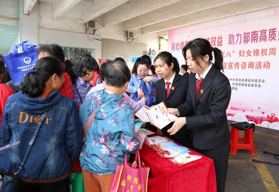 在“三八”國際婦女節(jié)到來之際,為進(jìn)一步強(qiáng)化婦女維權(quán)意識(shí),營造保護(hù)婦女兒童權(quán)益的良好社會(huì)氛圍,3月8日,郁南法院聯(lián)合縣紀(jì)委監(jiān)委、縣委政法委、縣婦聯(lián)、縣檢察院等單位在縣文化廣場(chǎng)開展“三八”婦女維權(quán)周普法宣傳活動(dòng)。