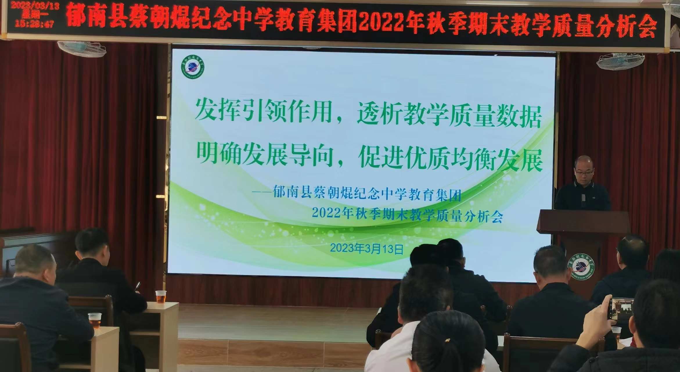 為在“雙減“背景下探尋落實學(xué)生素質(zhì)教育,更好地促進我縣教育發(fā)展,3月13日,郁南縣蔡朝焜紀(jì)念中學(xué)教育集團在蔡朝焜紀(jì)念中學(xué)召開了2022年秋季期末質(zhì)量分析會,縣教師發(fā)展中心領(lǐng)導(dǎo)及集團各成員學(xué)校主要領(lǐng)導(dǎo)參加了這次會議。