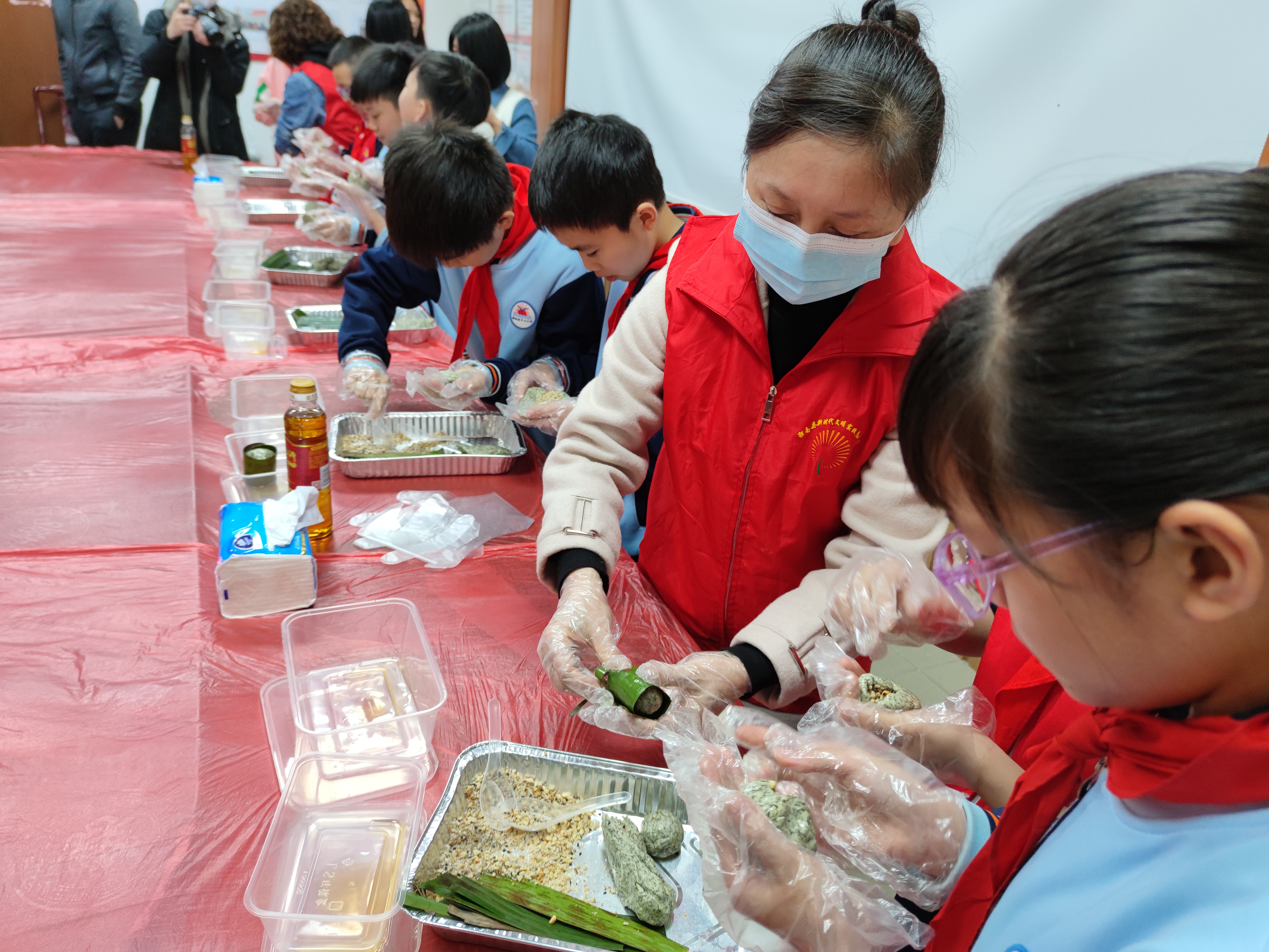 活動(dòng)中,志愿者先向留守兒童們講解艾葉的功效以及艾糍的由來,一步一步親自示范如何制作艾糍。聽完志愿者的講解,孩子們挽起袖子、戴上手套,在志愿者的指導(dǎo)下制作艾糍,體驗(yàn)著動(dòng)手的樂趣。