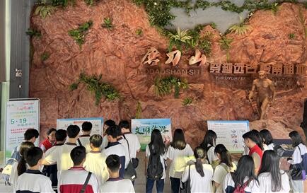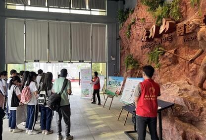 活動現(xiàn)場擺放了文明旅游宣傳展架,志愿者身著紅馬甲,向參觀展覽的學(xué)生發(fā)放“文明旅游從我做起”宣傳折頁,并對文明旅游、安全出行相關(guān)知識進行詳細(xì)講解,傳遞文明旅游理念。