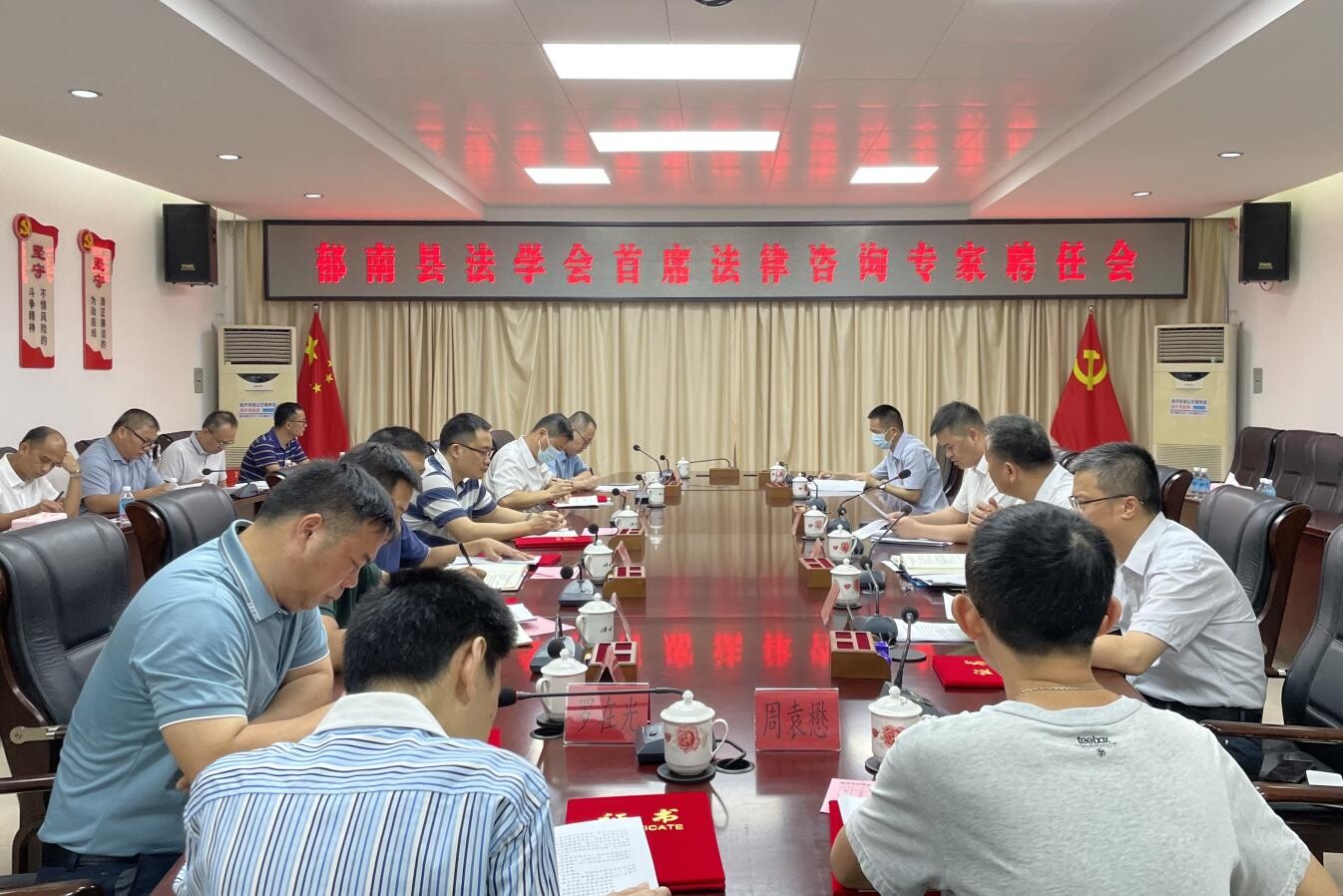 會(huì)議宣讀了《關(guān)于成立郁南縣首席法律咨詢專家委員會(huì)的通知》以及首席法律咨詢專家人員名單,審議了《郁南縣法學(xué)會(huì)首席法律咨詢專家管理辦法》,縣委副書記、政法委書記鄭輝亮現(xiàn)場(chǎng)為16名首席法律咨詢專家頒發(fā)了聘書并表示祝賀。