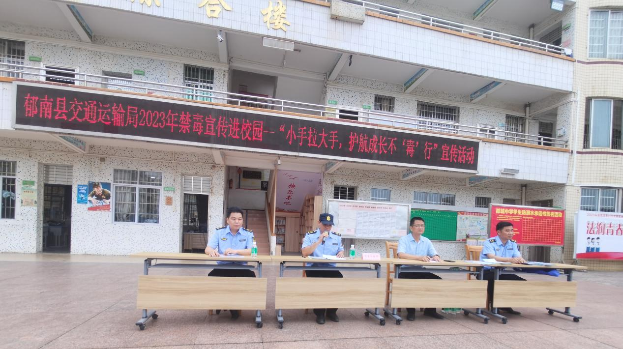 為進一步提高青少年識毒、防毒、拒毒的意識,引導青少年樹立“珍愛生命,遠離毒品”的正確觀念,營造無毒校園的禁毒宣傳氛圍。5月23日,郁南縣交通運輸局組織工作人員到郁南縣都城鎮(zhèn)初級中學開展“小手拉大手,護航成長不‘毒’行”為主題的宣講活動。