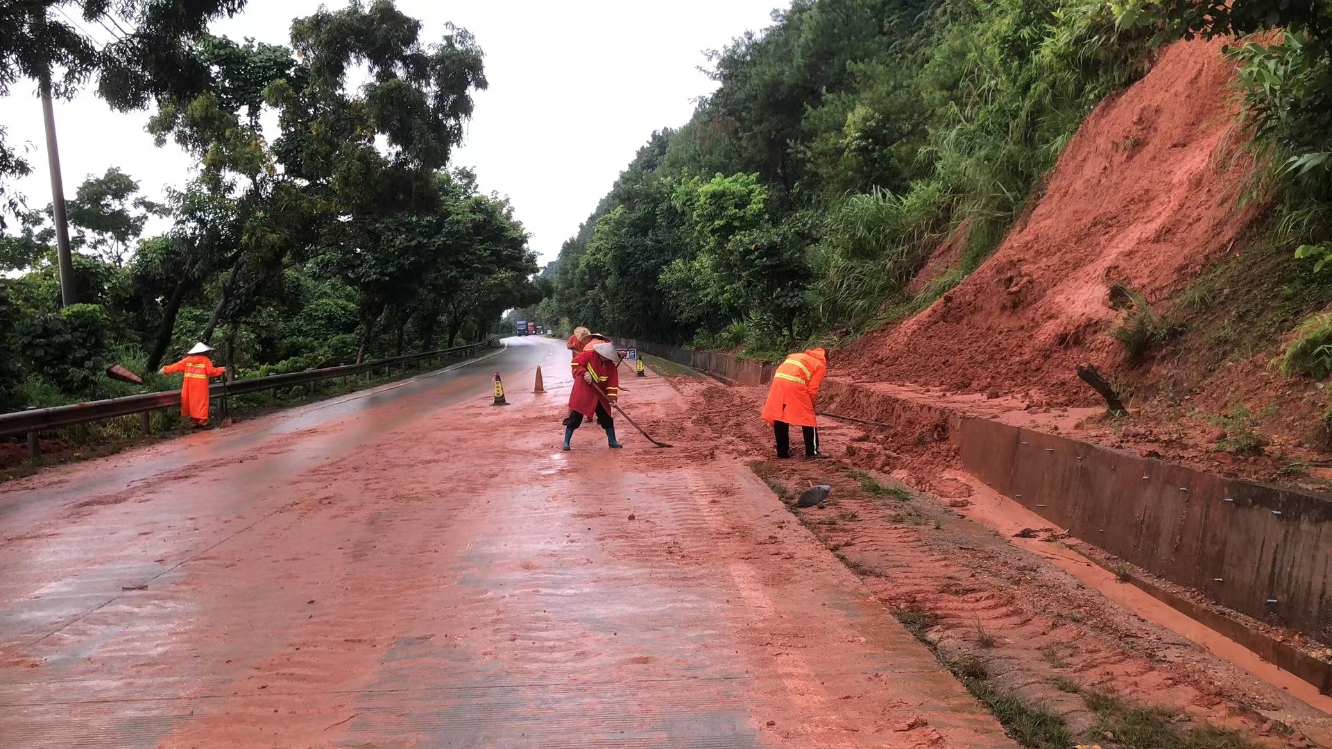 四是沖在前,深入公路一線搶險(xiǎn)救災(zāi)。受臺風(fēng)強(qiáng)降雨影響,縣內(nèi)S279、G234、X490、X475、X467等線路段出現(xiàn)樹木倒伏、公路塌方以及不同程度水浸阻斷情況,部分受浸水最深處達(dá)到1.8米??h交通運(yùn)輸系統(tǒng)各級黨組織和黨員干部職工積極發(fā)揮“兩個作用”,沖鋒在前,深入一線搶險(xiǎn)。一方面,縣交通運(yùn)輸局機(jī)關(guān)加強(qiáng)信息收集調(diào)處,落實(shí)24小時(shí)應(yīng)急值守值班,對收集的公路受災(zāi)情況及時(shí)協(xié)調(diào)處置。另一方面,、縣交通運(yùn)輸局、縣公路事務(wù)中心、縣交通事務(wù)中心保持24小時(shí)機(jī)動搶險(xiǎn),對反饋的受災(zāi)公路不分日夜開展搶險(xiǎn)救災(zāi)和受災(zāi)道路臨時(shí)管控工作,切實(shí)避免公路事故發(fā)生,保障群眾交通安全。截至9月4日,縣交通運(yùn)輸系統(tǒng)共出動養(yǎng)護(hù)人員511人次,出動養(yǎng)護(hù)車88臺班,鉤機(jī)8臺班,進(jìn)行涵洞、邊溝清淤疏通約21.4公里,處理積水點(diǎn)17處,清理倒樹(倒竹)970余棵,清理公路積泥垃圾419.1立方米,清理公路路障68余處,無因公路災(zāi)毀導(dǎo)致的人員傷亡事故發(fā)生。