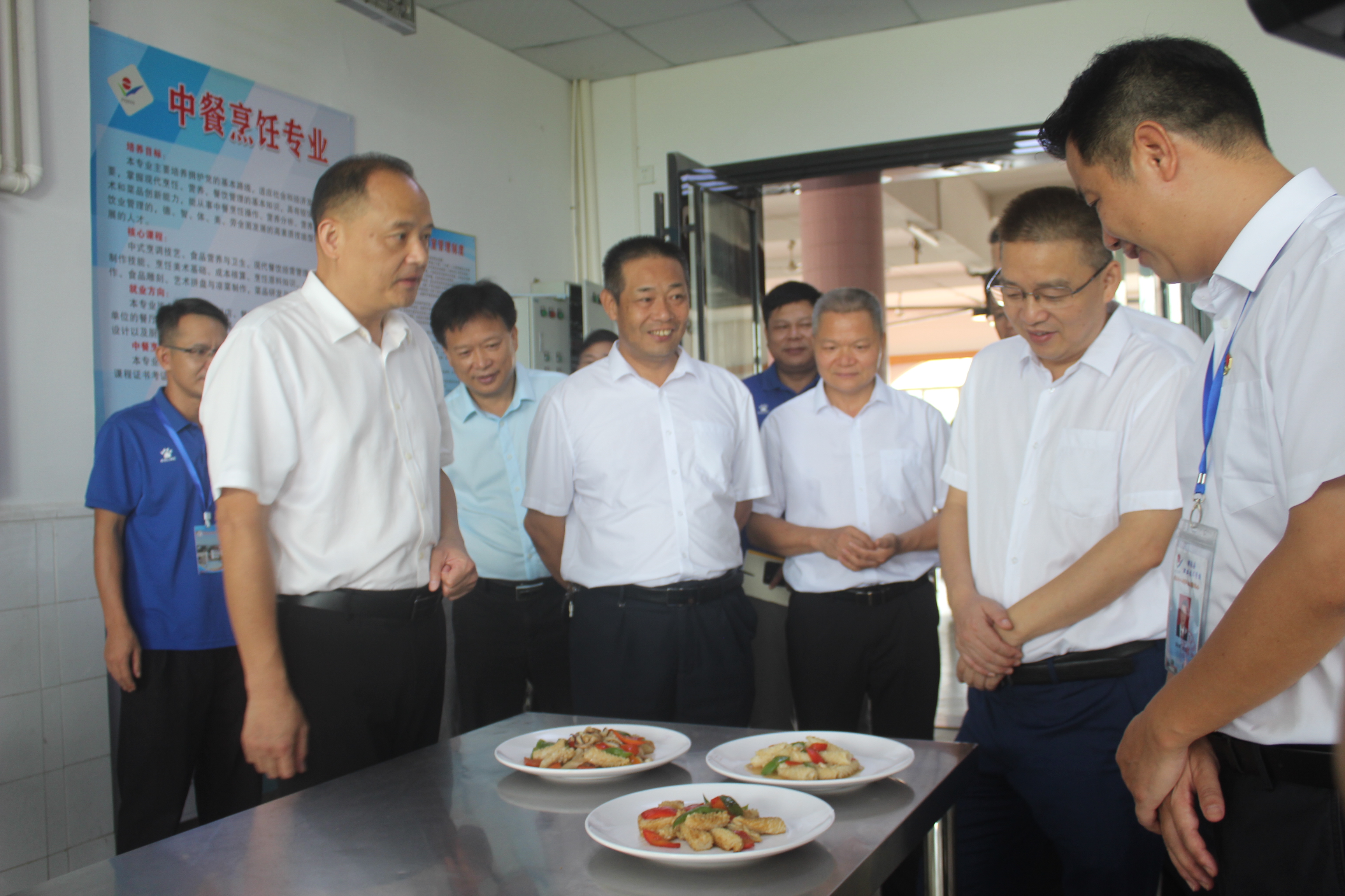 梁書記一行先后參觀了該校的烹飪實訓室、南粵家政室、數(shù)控實訓車間等實訓場室。并聽取學校負責人關于該校的學校規(guī)劃、專業(yè)建設、實訓開展、課堂教學、辦學特色、教學設施配備、師資隊伍建設等情況匯報。