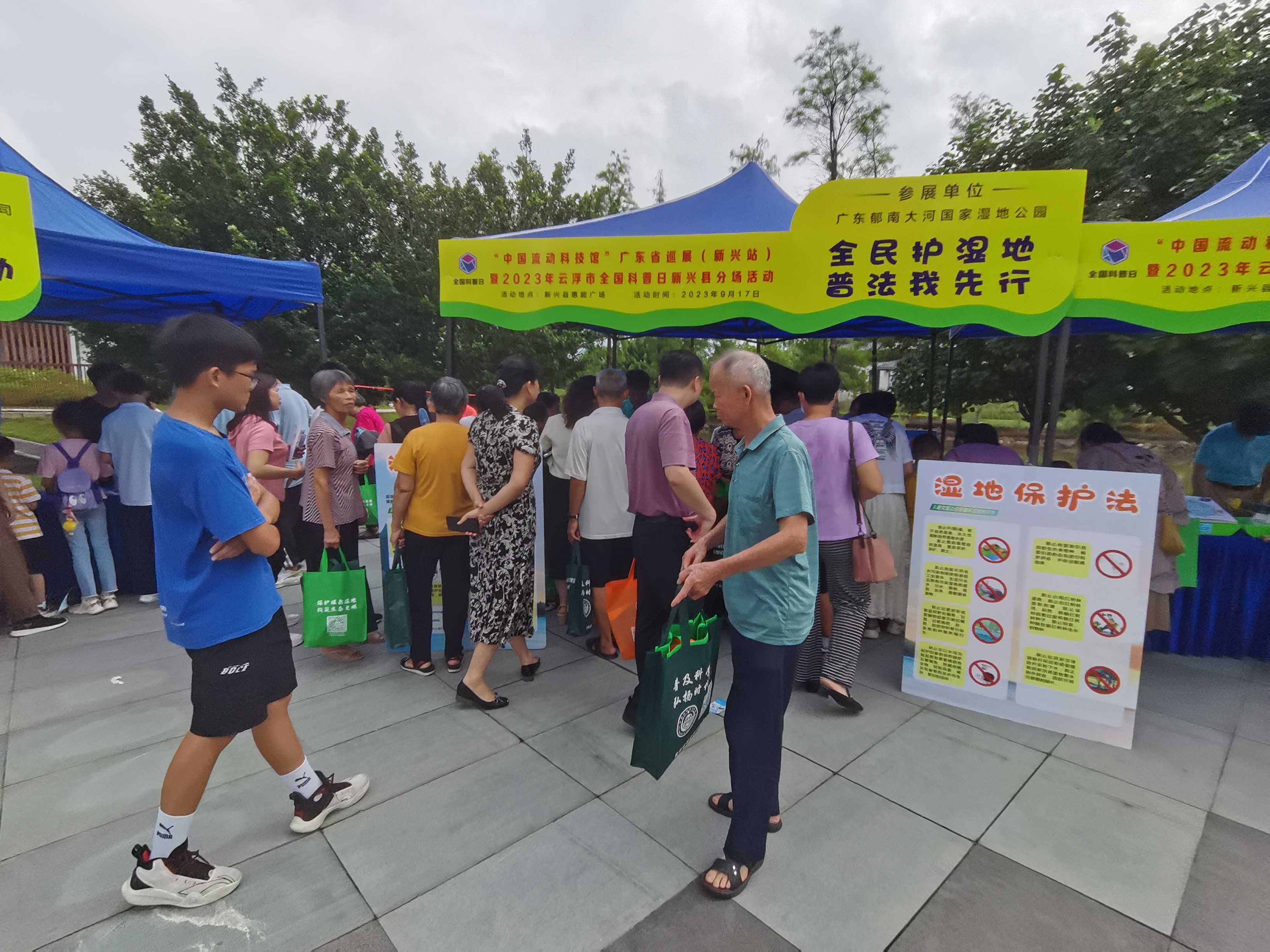 為著力提升廣大群眾濕地保護(hù)意識(shí),圍繞“提升全民科學(xué)素質(zhì),助力科技自立自強(qiáng)”主題,近期,廣東郁南大河國(guó)家濕地公園受邀參加由云浮市教育局、市科技局、市科協(xié)等相關(guān)部門聯(lián)合舉辦的2023年云浮市全國(guó)科普日主(分)場(chǎng)活動(dòng),分別在云浮市人民廣場(chǎng)、新興縣惠能廣場(chǎng)和云安區(qū)鯤鵬小學(xué)三地,為當(dāng)?shù)厥忻袢罕娂皫熒I(xiàn)上了一場(chǎng)場(chǎng)互動(dòng)有趣、體驗(yàn)豐富的生態(tài)科普盛宴。