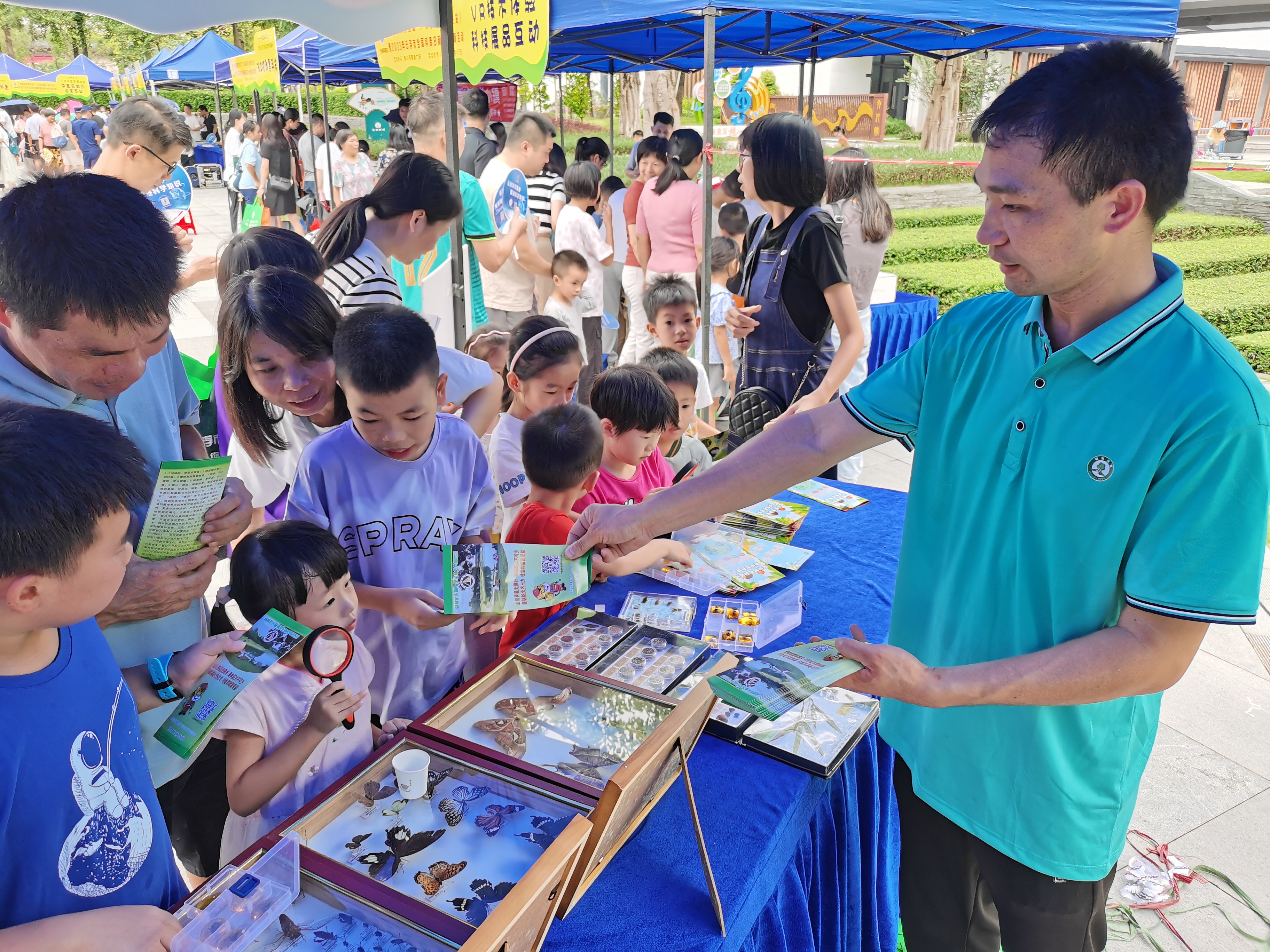 活動(dòng)中,科普員通過昆蟲和植物標(biāo)本展示、樹葉畫制作講解、趣味動(dòng)植物猜謎等互動(dòng)方式,讓當(dāng)?shù)厝罕娭泵鏉竦氐木G色生態(tài),感受大自然的魅力,近距離體驗(yàn)自然的神奇所在。同時(shí)借助宣傳展板和宣傳資料,為群眾和師生科普動(dòng)物習(xí)性和植物特征之余,也提高群眾對(duì)濕地保護(hù)法的知曉度,加深群眾對(duì)濕地的印象和自身的環(huán)境保護(hù)意識(shí)。