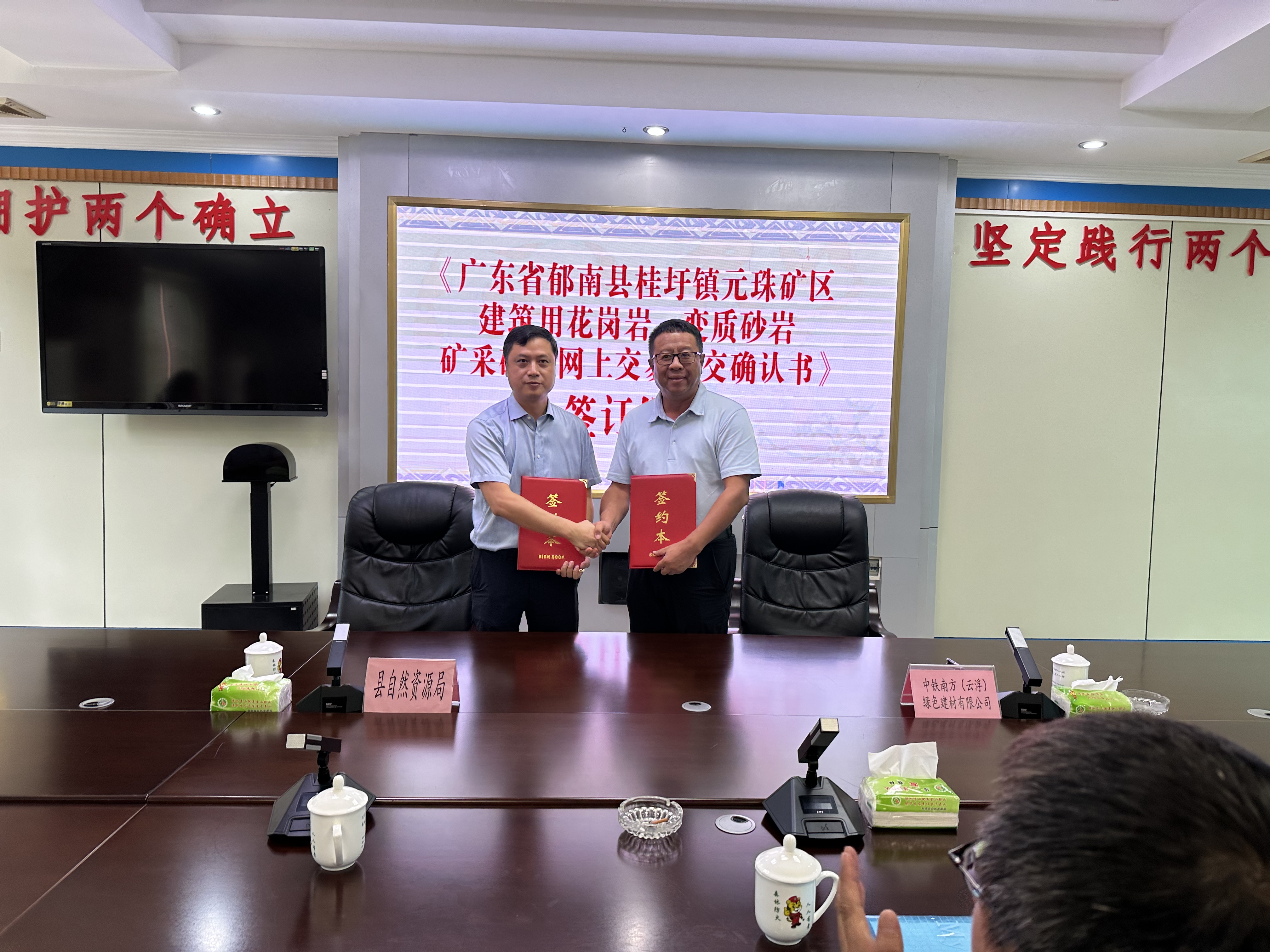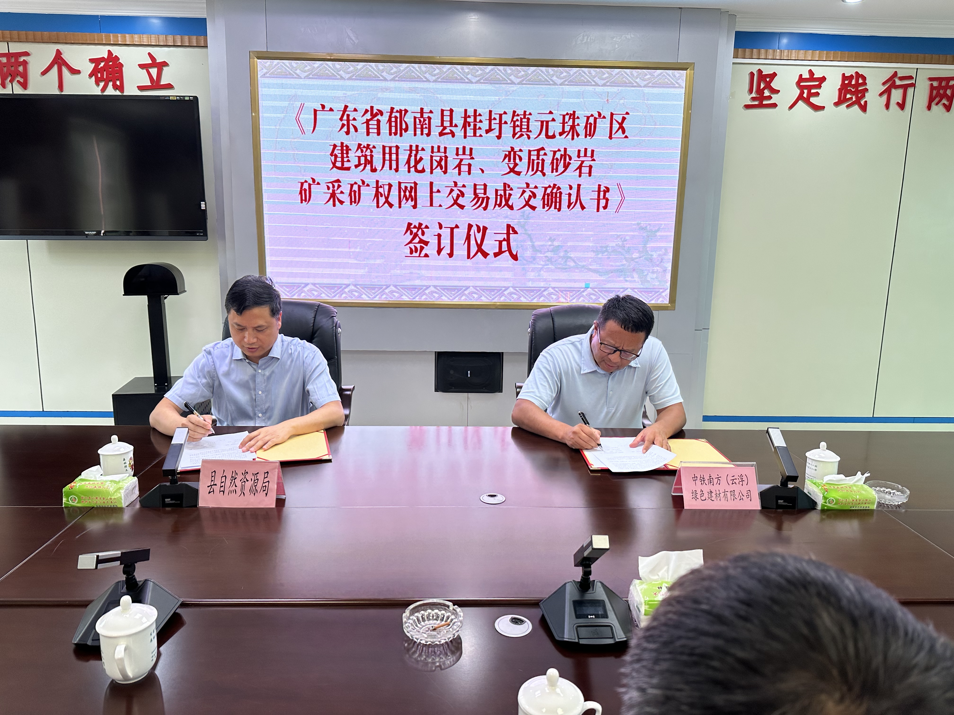 《廣東省郁南縣桂圩鎮(zhèn)元珠礦區(qū)建筑用花崗巖、變質(zhì)砂巖礦采礦權(quán)網(wǎng)上交易成交確認(rèn)書(shū)》正式簽訂