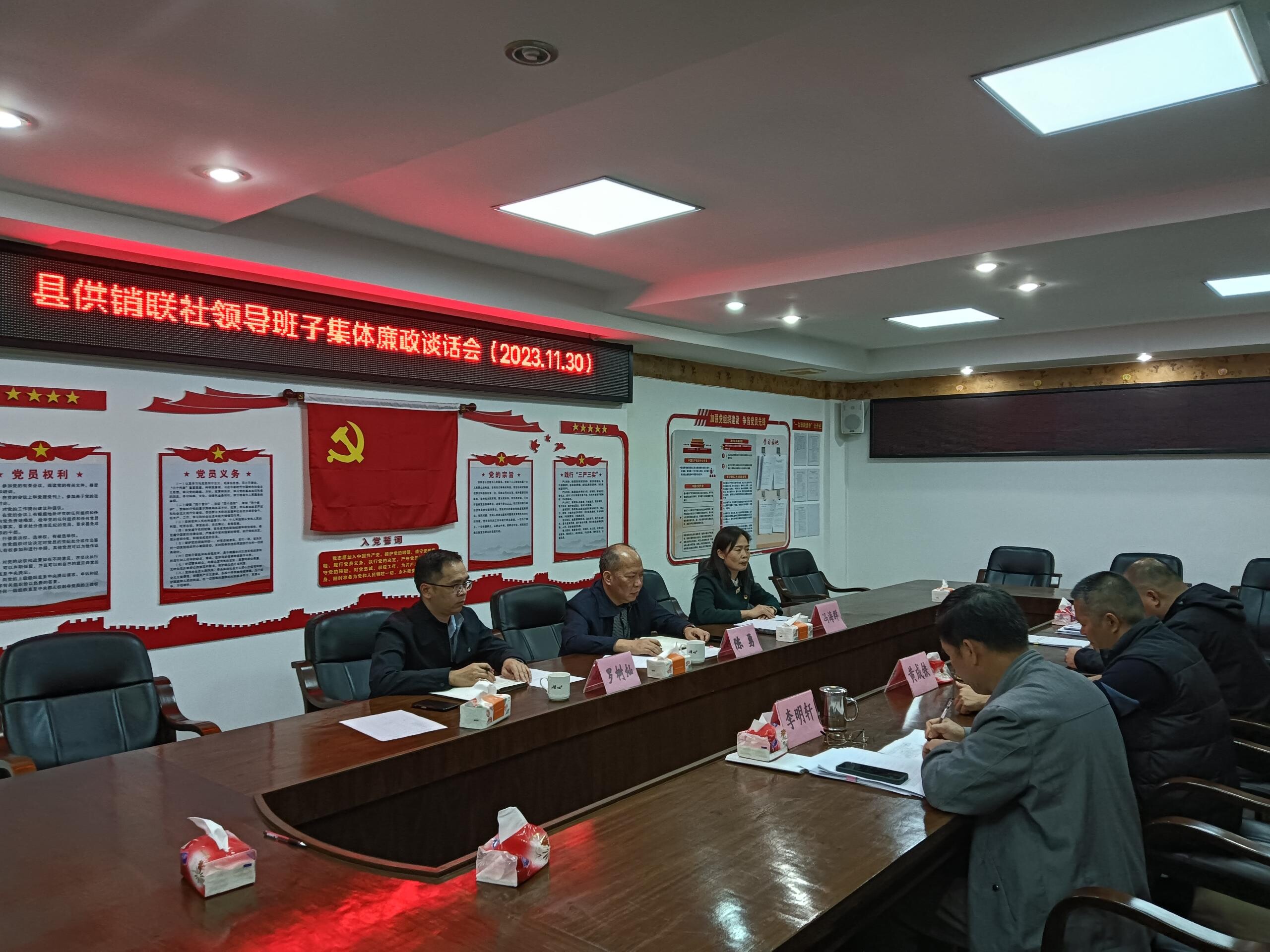 為深入推進(jìn)黨風(fēng)廉政建設(shè)工作,進(jìn)一步嚴(yán)明各項(xiàng)紀(jì)律規(guī)范,20231130日下午,縣紀(jì)委監(jiān)委第二派駐紀(jì)檢監(jiān)察組組長馮海群到縣供銷聯(lián)社開展領(lǐng)導(dǎo)班子集體廉政談話,縣供銷社班子成員、各股室負(fù)責(zé)人參加會議。