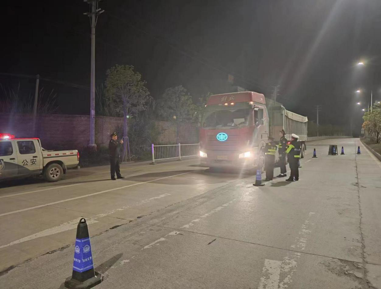 郁南縣交通、交警在S368線縣城范圍內(nèi)高崗路段開展夜間聯(lián)合執(zhí)勤