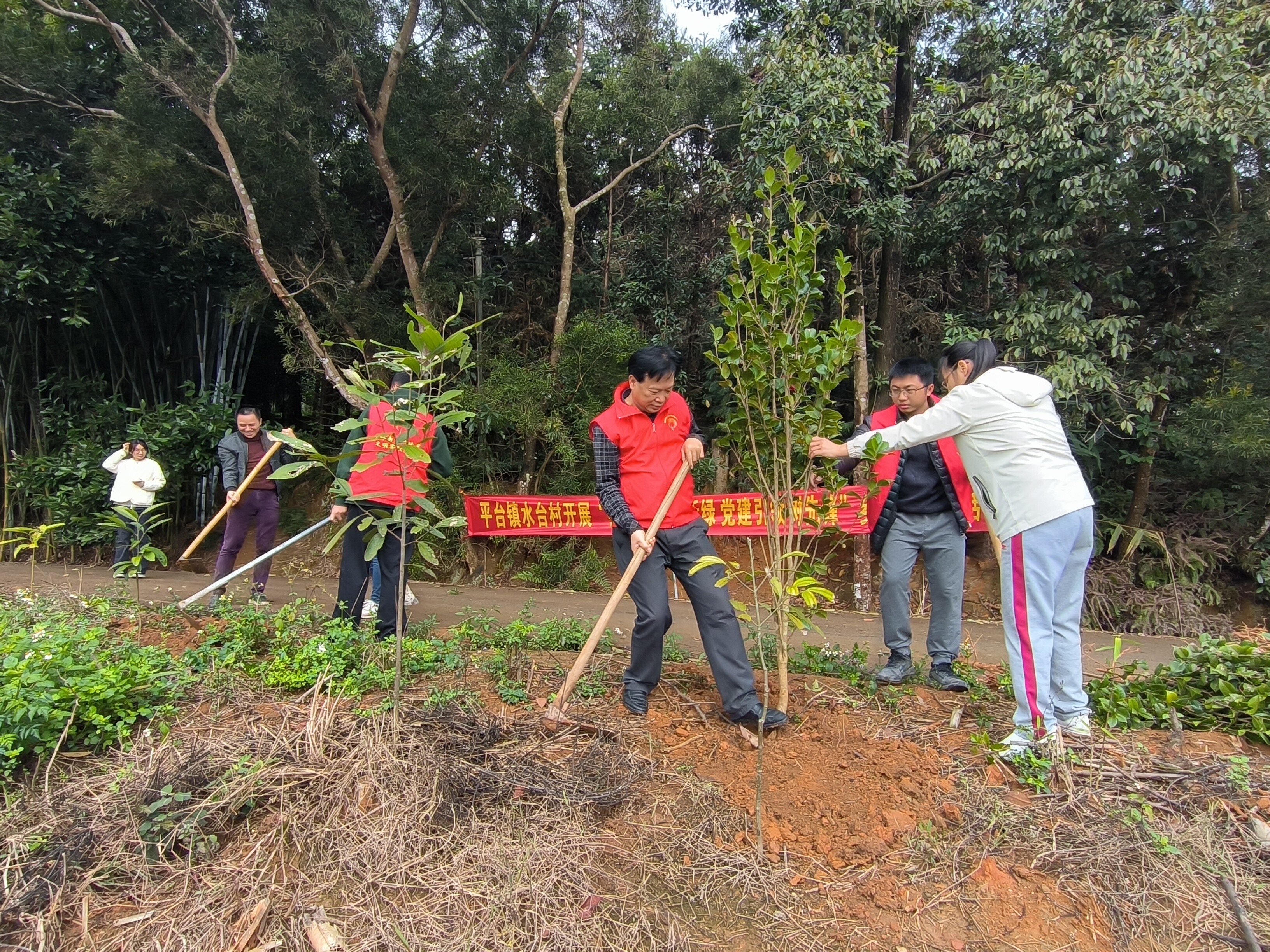 1月31日上午,我局黨員干部和掛扶村平臺鎮(zhèn)水臺村委干部種植了茶花、桂花、秋楓木等樹苗,以實(shí)際行動掀起黨建引領(lǐng)綠化郁南新熱潮。
