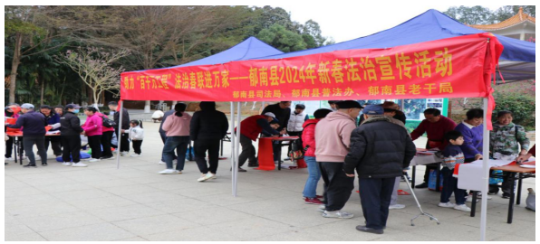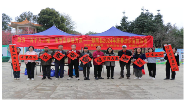 春節(jié)將至,為進(jìn)一步弘揚(yáng)社會(huì)主義法治文化,推進(jìn)法治郁南建設(shè)。2月4日,郁南縣司法局、郁南縣普法辦、郁南縣老干部局在大王山桃花園開(kāi)展助力“百千萬(wàn)工程”“法治春聯(lián)進(jìn)萬(wàn)家”系列活動(dòng)。