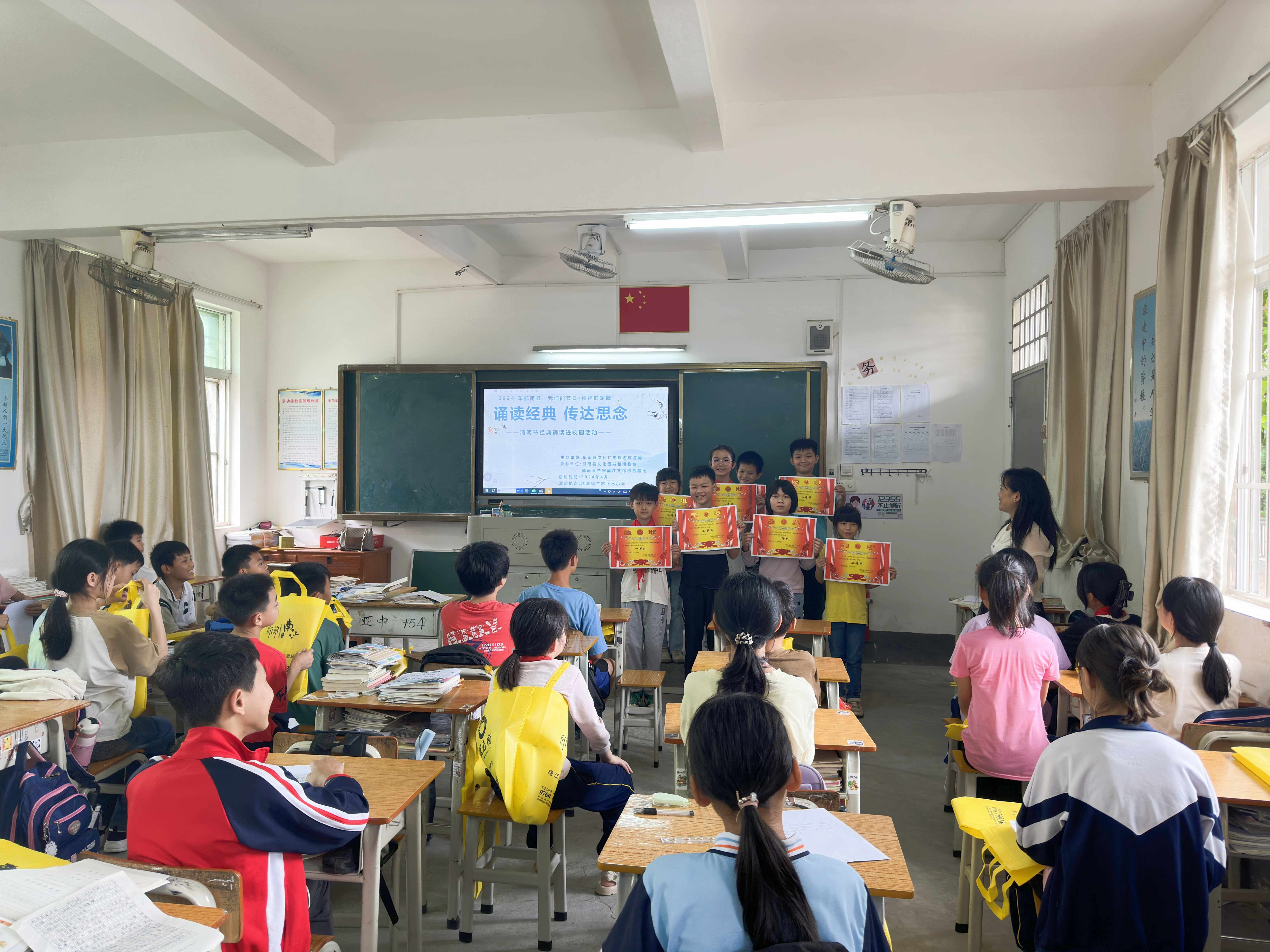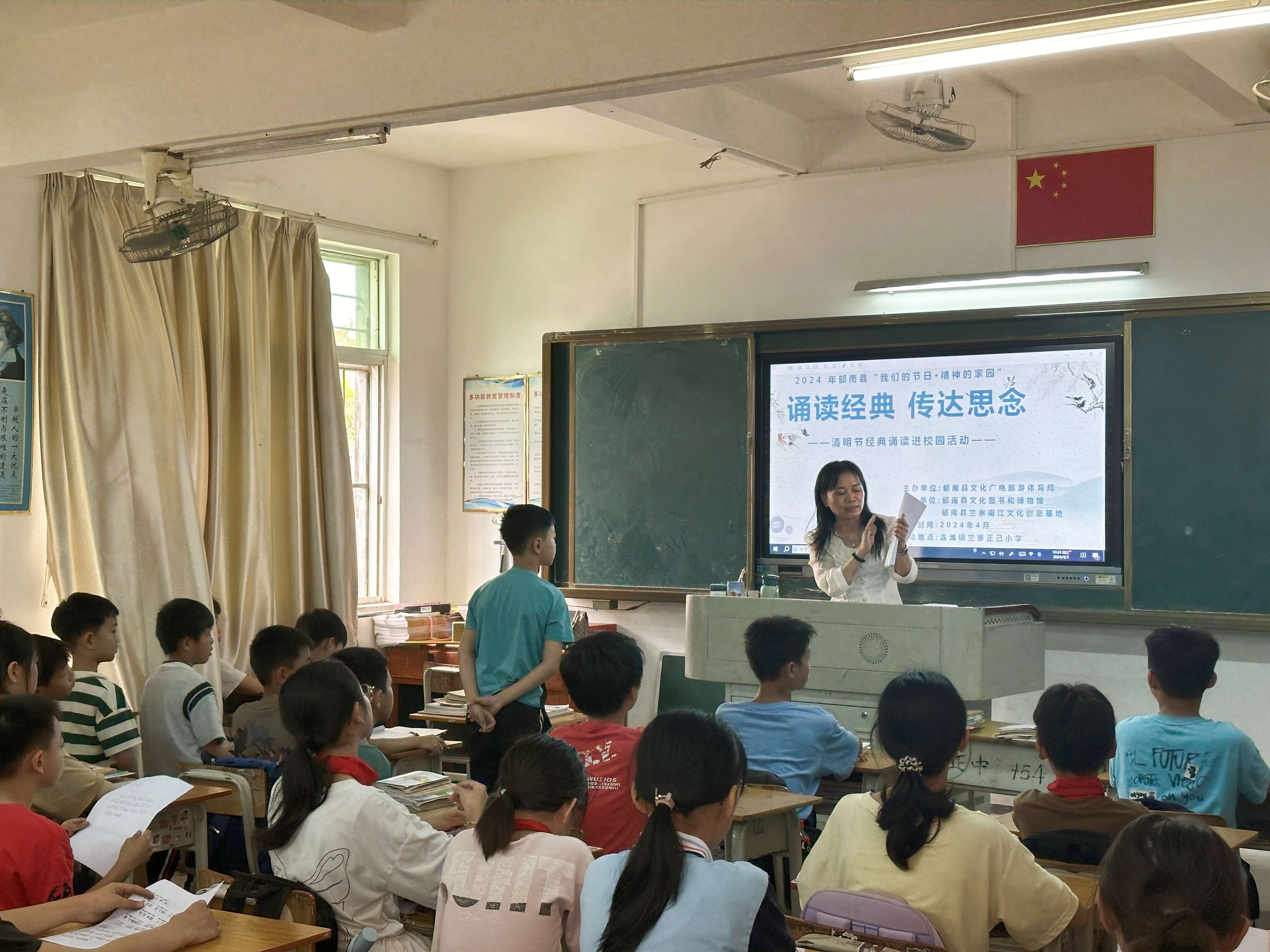4月3日上午,由郁南縣文化廣電旅游體育局主辦,郁南縣文化圖書和博物館、郁南縣蘭寨南江文化創(chuàng)意基地承辦,在連灘鎮(zhèn)蘭寨正己小學(xué)開展了清明節(jié)經(jīng)典誦讀進(jìn)校園活動(dòng),扎實(shí)推進(jìn)經(jīng)典誦讀和中華優(yōu)秀傳統(tǒng)文化進(jìn)校園,加強(qiáng)未成年人思想道德建設(shè)工作。