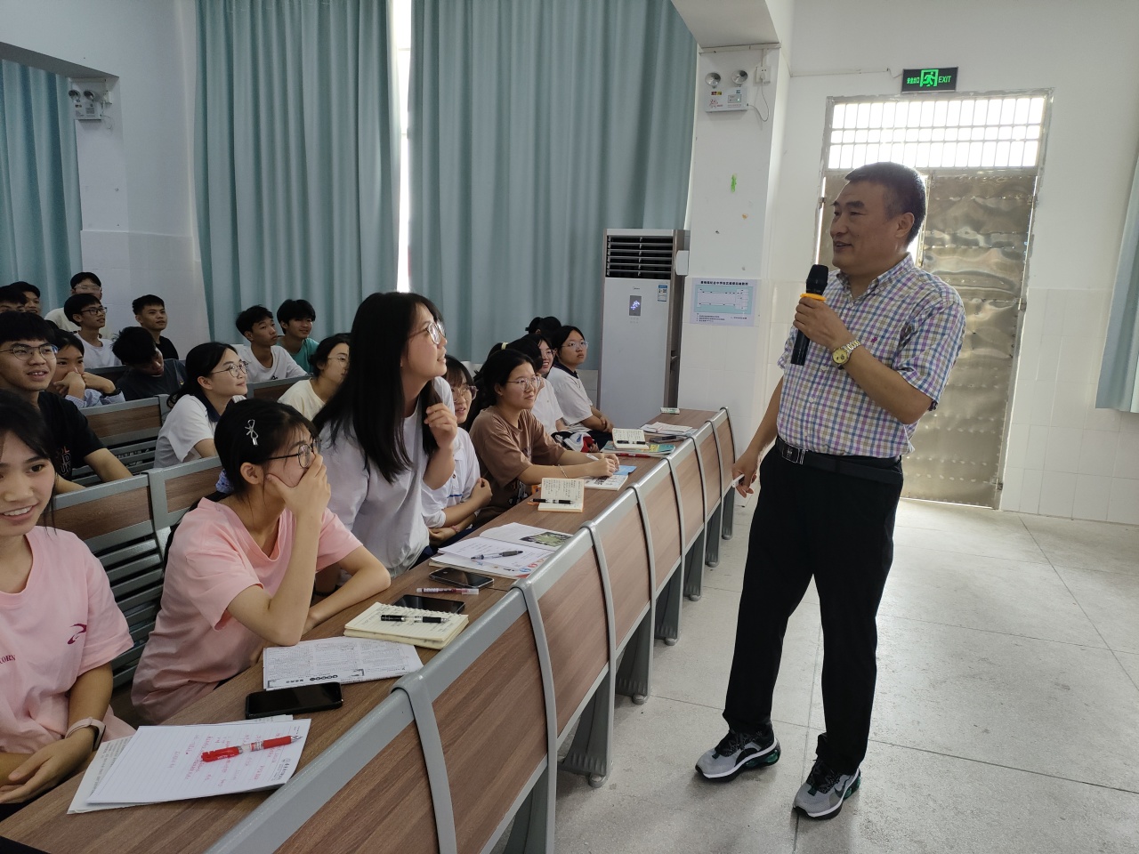 詹老師在上午就找了幾份學生的歷史答題卡,為學生面批面改,了解答題存在問題。在講座上,詹老師指出歷史主觀題答題要求:工整、規(guī)范、準確。詹老師以其淵博的學識、豐富的教學經(jīng)歷把解題技巧娓娓道出,講得深入淺出,通俗易懂。重點講解了歷史論述題和選擇題的解題技巧,并且馬上實戰(zhàn)演練,結(jié)合高考真題即問即答,掀起了一輪頭腦風暴。詹老師還深入到同學們中間去討論,整個會場氣氛熱烈,同學們積極參與問答。