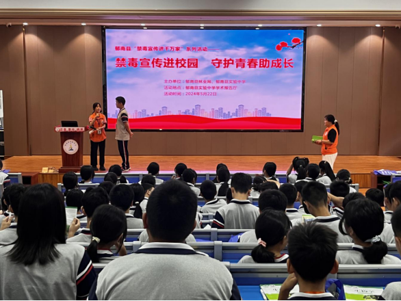 5月22日,郁南縣林業(yè)局聯(lián)合縣禁毒辦、云浮大同駐郁南禁毒社工站走進郁南縣實驗中學開展以“禁毒宣傳進校園 守護青春助成長”為主題的禁毒宣傳活動,對中學生宣傳禁種鏟毒知識,提高中學生對毒品危害的認識,增強防毒意識,營造一個健康無毒的校園環(huán)境。本次活動共有200多名師生積極參與。