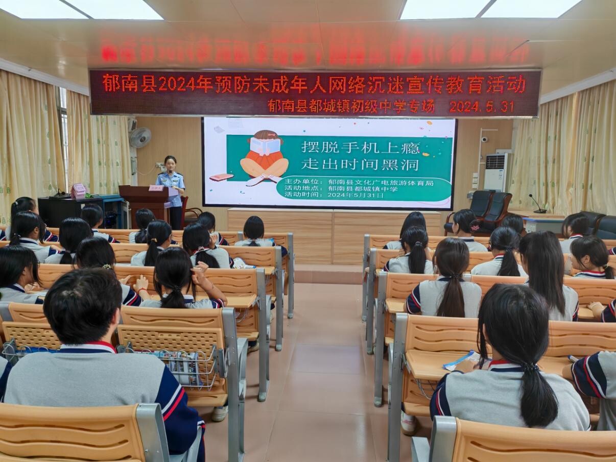 未成年人承載著祖國(guó)的未來(lái)和希望,保護(hù)未成年人的合法權(quán)益,讓他們?cè)陉?yáng)光下健康成長(zhǎng)是全社會(huì)的共同責(zé)任。為了引導(dǎo)未成年人合理使用網(wǎng)絡(luò),531日,縣文廣旅體局在郁南縣都城鎮(zhèn)初級(jí)中學(xué)組織開展了預(yù)防未成年人沉迷網(wǎng)絡(luò)宣傳教育活動(dòng),100多名師生參加。
