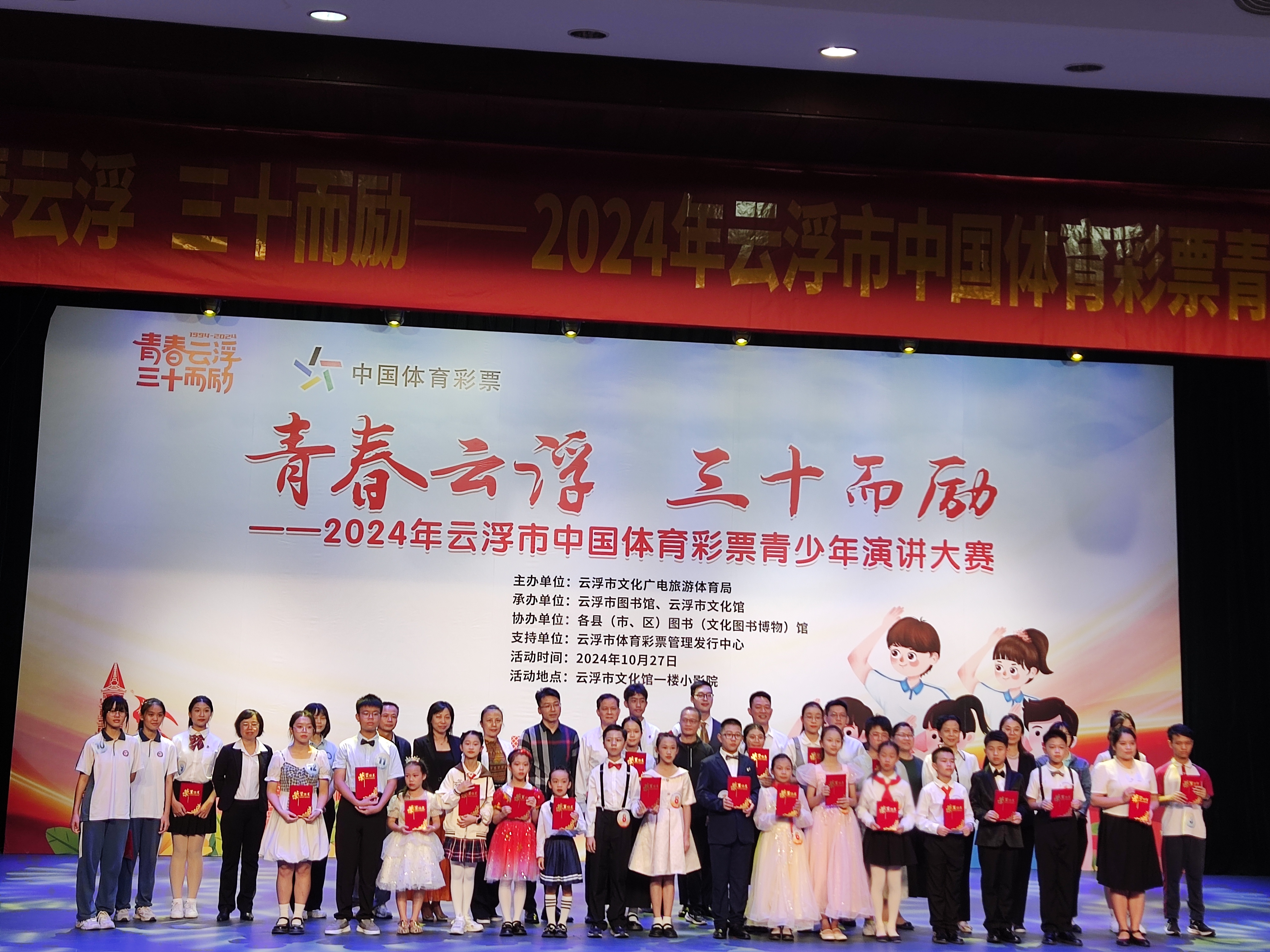 為慶祝中華人民共和國成立75周年及云浮建市30周年,充分展示新中國成立以來的光輝歷程和偉大成就,展示云浮建市以來經(jīng)濟(jì)和社會各項(xiàng)事業(yè)的新發(fā)展、新變化、新成就、新形象,引導(dǎo)廣大青少年厚植愛黨、愛國、愛社會主義的情感,展示我市青少年銳意進(jìn)取、積極向上的青春風(fēng)采。由云浮市文化廣電旅游體育局主辦,云浮市圖書館、云浮市文化館聯(lián)合全市公共圖書館于2024年10月27日舉辦了青春云浮三十而勵(lì)——2024年云浮市中國體育彩票青少年演講大賽。