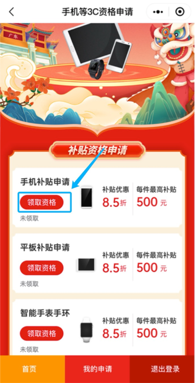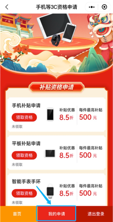 步驟5認(rèn)證通過后即可領(lǐng)取補(bǔ)貼資格,點(diǎn)擊“我的申請(qǐng)”
