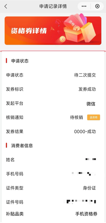 步驟6顯示“發(fā)券成功”即為領(lǐng)取到補(bǔ)貼資格