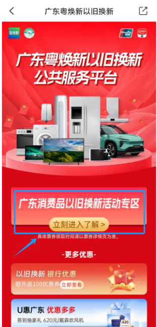 步驟2選擇廣東消費(fèi)品以舊換新活動(dòng)專區(qū),點(diǎn)擊“立刻進(jìn)入了解”