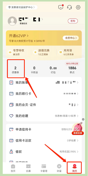 步驟4在“我的”優(yōu)惠券可快速打開補(bǔ)貼資格