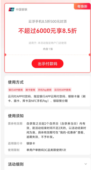 步驟6在門店選購(gòu)后,使用云閃付付款碼支付即可享受支付立減