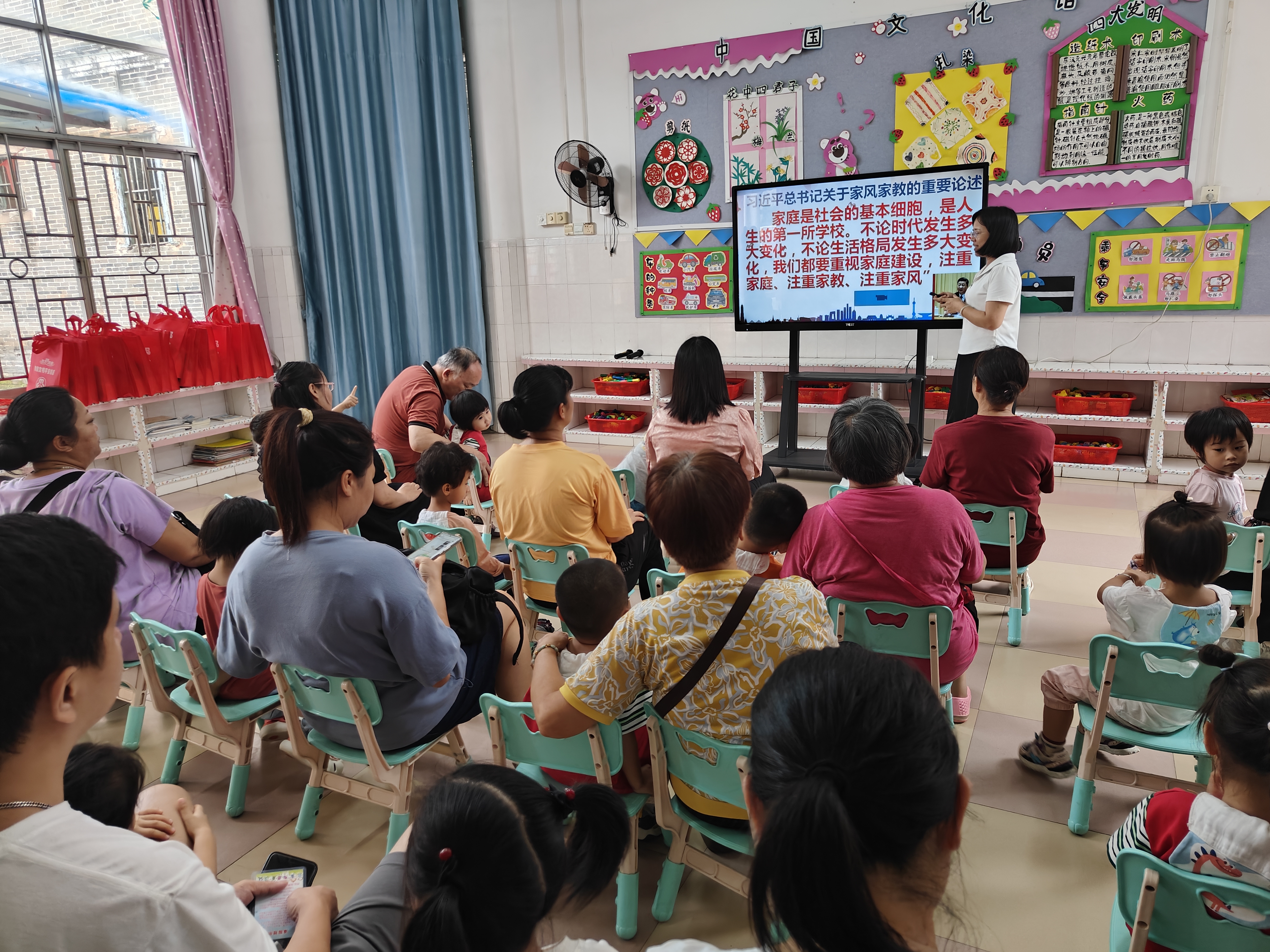 在活動(dòng)現(xiàn)場(chǎng),縣婦聯(lián)主席首先對(duì)習(xí)近平總書(shū)記關(guān)于家風(fēng)家教的重要論述進(jìn)行了深入解讀,隨后,她講解了培育良好家風(fēng)的方法與途徑,分享了實(shí)用有效的教育方法,引發(fā)了大家強(qiáng)烈的共鳴與思考。接著,工作人員為家長(zhǎng)和孩子們提供了家風(fēng)、家訓(xùn)等類型的讀物,引導(dǎo)家長(zhǎng)將書(shū)中的故事和知識(shí)講給孩子聽(tīng)。最后,小講解員上臺(tái)以稚嫩清脆的童音、生動(dòng)有趣且充滿童真的語(yǔ)言,通過(guò)誦讀經(jīng)典為大家講述了一個(gè)優(yōu)秀家風(fēng)故事,故事讓在場(chǎng)的聽(tīng)眾深受觸動(dòng),大家紛紛表示要從自身做起,從家庭做起,傳承和弘揚(yáng)優(yōu)秀家風(fēng),以良好的家風(fēng)家教為社會(huì)文明建設(shè)貢獻(xiàn)力量。