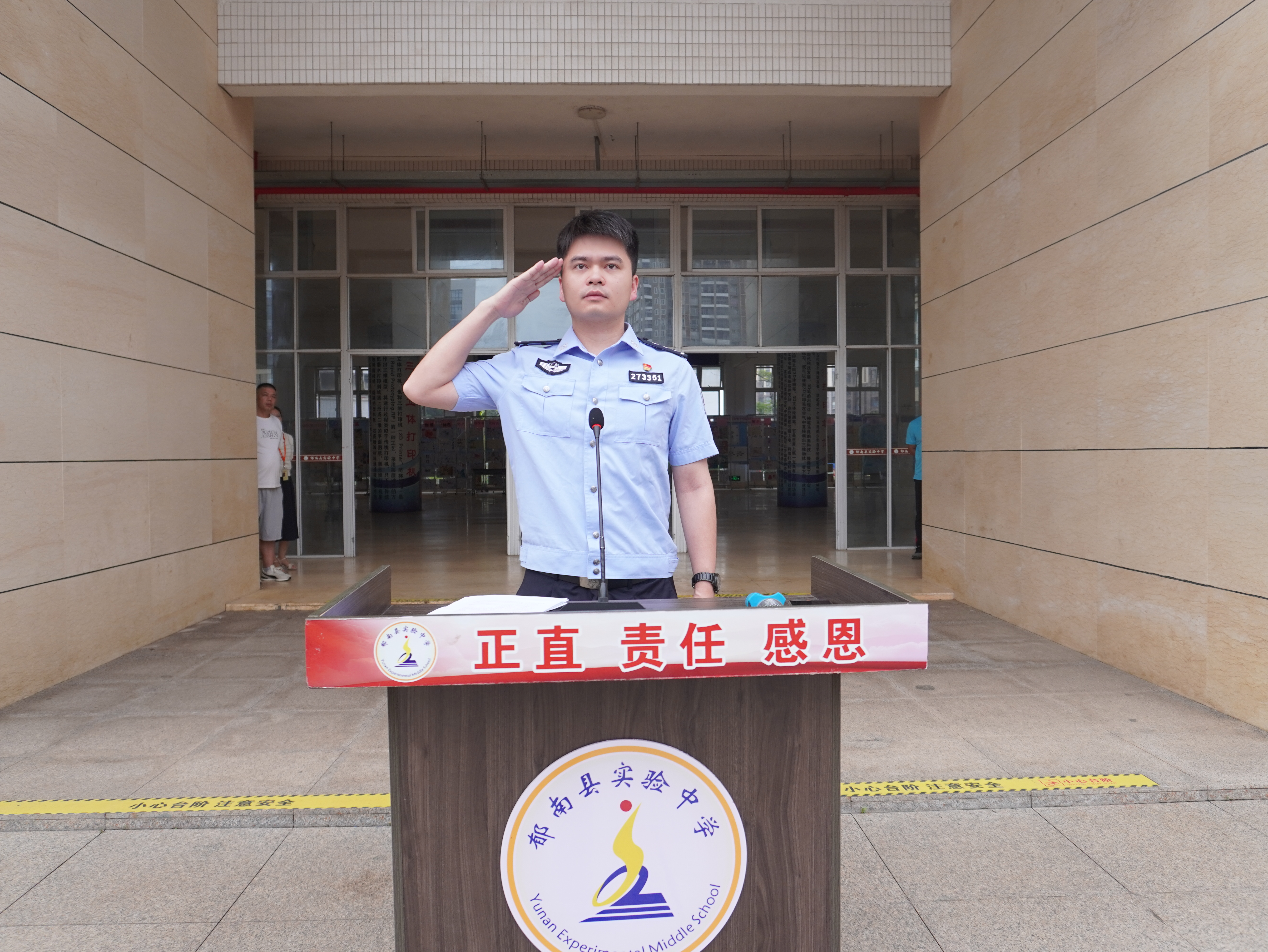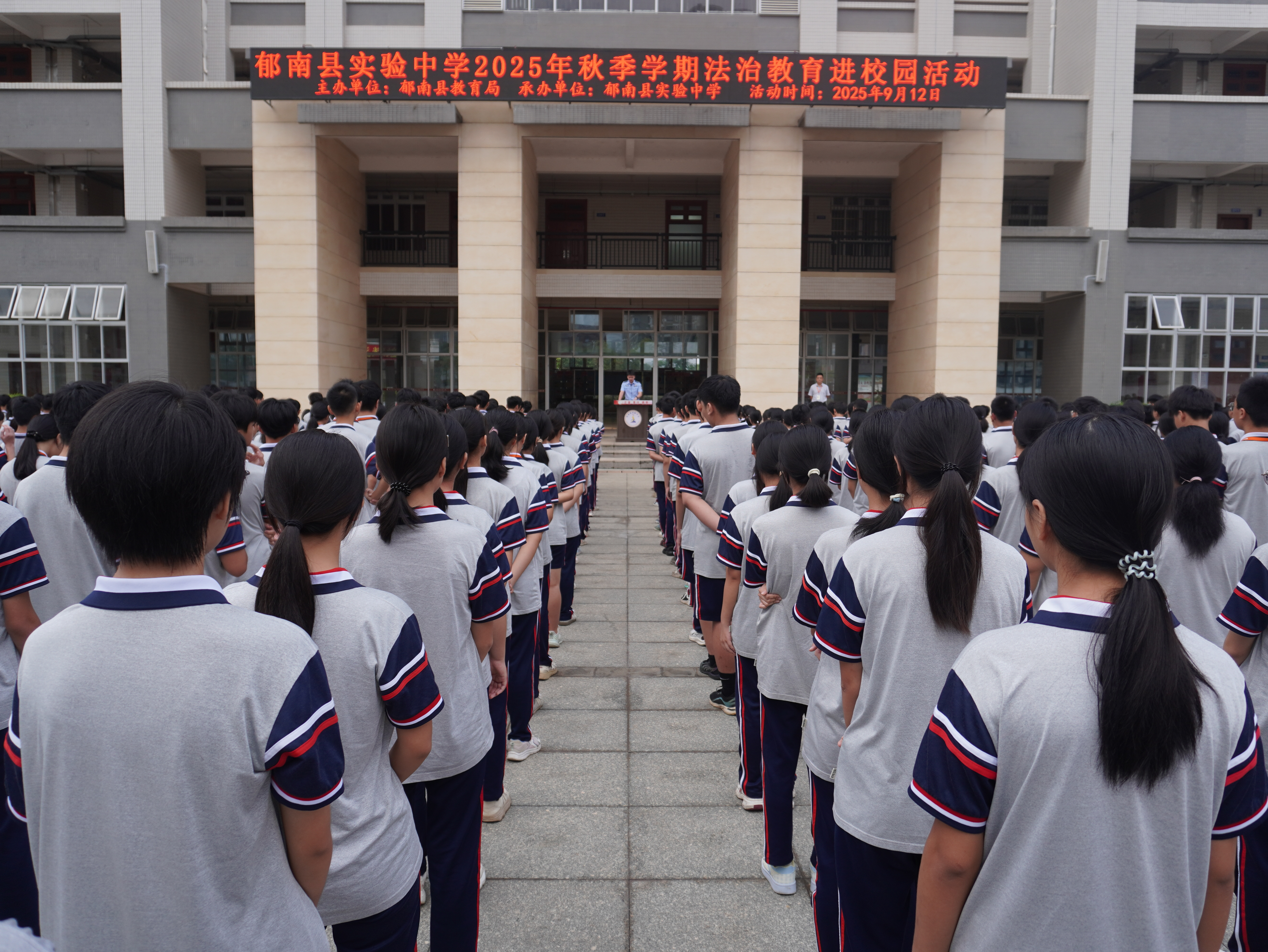 為切實(shí)加強(qiáng)校園法治教育,增強(qiáng)全體師生的法治觀念與自我保護(hù)能力,全力營(yíng)造平安、和諧、文明的育人環(huán)境,2025年9月12日上午,郁南縣實(shí)驗(yàn)中學(xué)全體師生齊聚綜合樓廣場(chǎng),隆重舉行了“法治進(jìn)校園”主題教育活動(dòng)。此次活動(dòng)特邀都城鎮(zhèn)派出所副所長(zhǎng)、學(xué)校法治副校長(zhǎng)、學(xué)校杰出校友黃錦權(quán)進(jìn)校,為師生上一堂法治安全教育課。