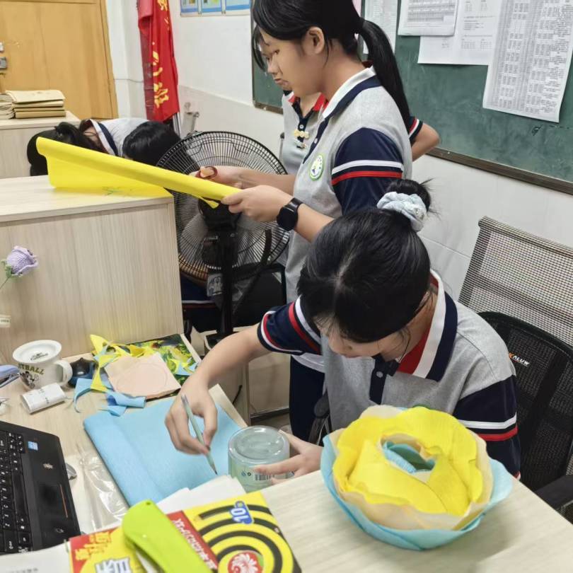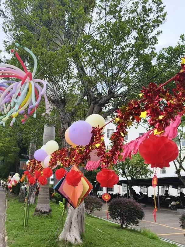 本次活動(dòng)由學(xué)校德育處與團(tuán)委聯(lián)合策劃,八九年級各班級積極參與,用創(chuàng)意與巧手將校園裝點(diǎn)得喜慶而溫馨。讓學(xué)生通過手工勞動(dòng),將對傳統(tǒng)文化的熱愛與對祖國的祝福,巧妙轉(zhuǎn)化為校園中一道道亮麗的風(fēng)景線。 校園煥新顏,雙節(jié)同慶氛圍濃。彩紙制成的繁花在絢爛“綻放”,形態(tài)各異的創(chuàng)意掛飾錯(cuò)落有致;繽紛的彩帶與構(gòu)思巧妙的燈謎交織,共同將校園裝點(diǎn)得斑斕絢麗,節(jié)日氣氛濃郁。 巧手展才藝,匠心獨(dú)具顯情懷。在為期七天的裝飾制作與布置期間,各班同學(xué)在班主任的指導(dǎo)下充分發(fā)揮團(tuán)隊(duì)協(xié)作精神,利用課余時(shí)間精心創(chuàng)作。同學(xué)們巧妙運(yùn)用學(xué)校提供的卡紙、彩帶等基礎(chǔ)材料,同時(shí)融入紙盒子、塑料瓶等可回收材料,既體現(xiàn)了環(huán)保理念,又展現(xiàn)了無限創(chuàng)意。 9月29日,由校領(lǐng)導(dǎo)、教師代表組成的評審團(tuán)對各班裝飾區(qū)域進(jìn)行了現(xiàn)場評比。評委們對裝飾作品給予了高度評價(jià),特別贊賞了同學(xué)們在作品中所體現(xiàn)出來的巧思妙想以及對傳統(tǒng)文化的傳承和對祖國的熱愛。最終每個(gè)年級評選出一等獎(jiǎng)3名,二等獎(jiǎng)5名,三等獎(jiǎng)8名。 此次活動(dòng)成功地將美育、勞育與愛國主義教育有機(jī)融合,同學(xué)們在動(dòng)手實(shí)踐中深化了對傳統(tǒng)文化的認(rèn)知,在團(tuán)隊(duì)協(xié)作中增強(qiáng)了集體榮譽(yù)感,在創(chuàng)意設(shè)計(jì)中抒發(fā)了愛國情懷。未來,學(xué)校將繼續(xù)開展更多豐富多彩的校園文化活動(dòng),為同學(xué)們提供展示才華的舞臺(tái),讓家國情懷根植在每個(gè)學(xué)子的心中。