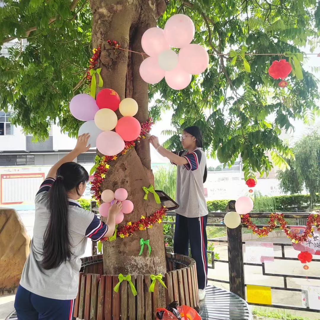 為慶祝中華人民共和國成立76周年與中秋佳節(jié),弘揚(yáng)中華優(yōu)秀傳統(tǒng)文化,厚植學(xué)生家國情懷,營造熱烈喜慶的校園節(jié)日氛圍,強(qiáng)化勞動(dòng)教育,融合“五育并舉”,郁南縣實(shí)驗(yàn)中學(xué)于9月22—29日成功舉辦了"巧手繪中秋,同心賀國慶"主題校園裝飾評比活動(dòng)。