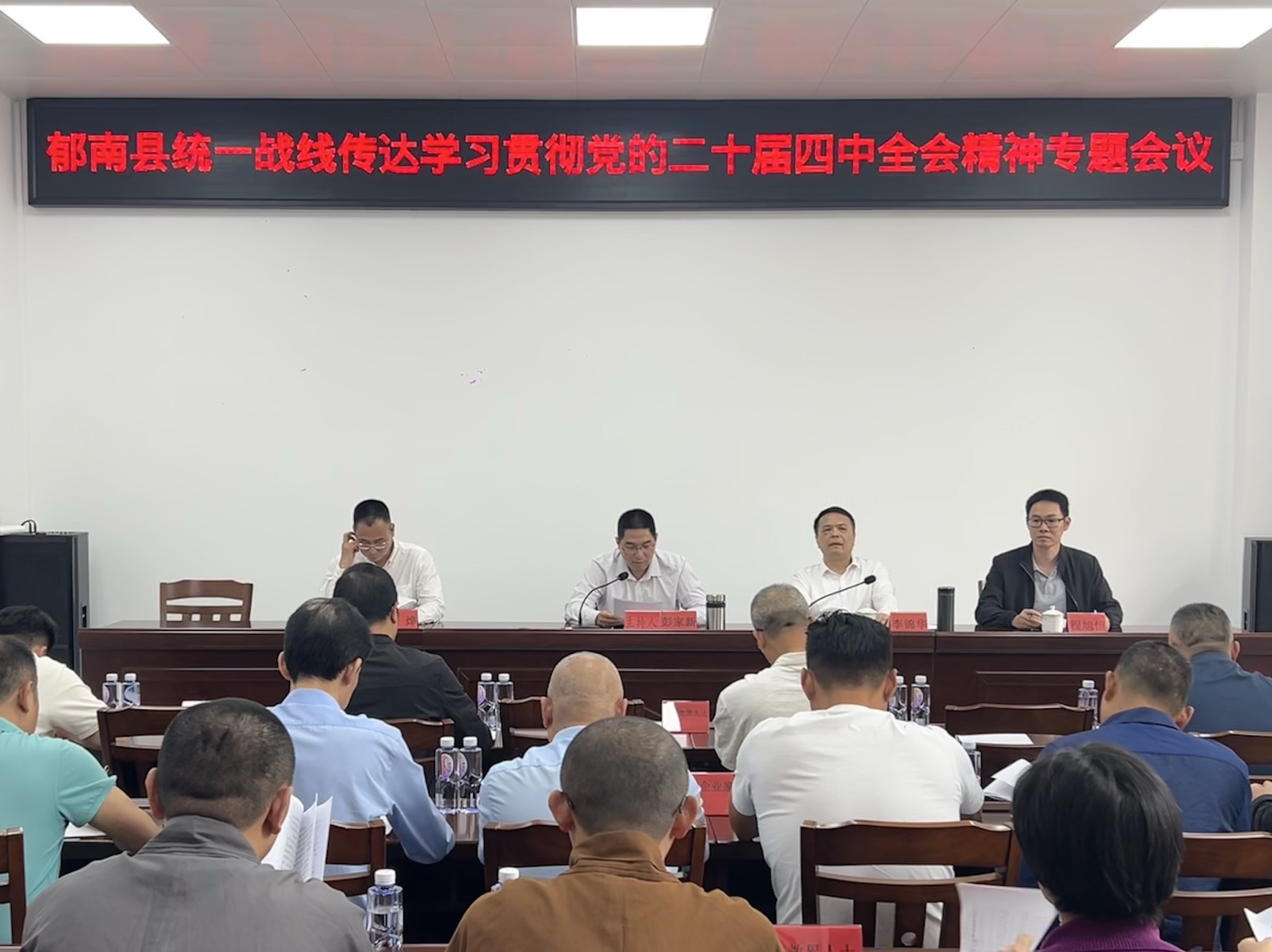 10月29日下午,郁南縣委統(tǒng)戰(zhàn)部召開全縣統(tǒng)一戰(zhàn)線傳達學習貫徹黨的二十屆四中全會精神專題會議,會議認真?zhèn)鬟_學習黨的二十屆四中全會精神以及省、市、縣傳達學習貫徹黨的二十屆四中全會精神相關會議精神,深入領會核心要義,并系統(tǒng)部署了貫徹落實舉措,引導全縣統(tǒng)一戰(zhàn)線成員把思想和行動統(tǒng)一到中央、省委、市委和縣委的決策部署上來,為郁南縣“十五五”時期高質(zhì)量發(fā)展凝聚統(tǒng)戰(zhàn)力量。縣領導彭家新主持會議并作講話。縣委統(tǒng)戰(zhàn)部、縣工商聯(lián)、縣僑聯(lián)全體領導干部,以及民主黨派、無黨派人士、民營企業(yè)、縣新階聯(lián)和宗教界等各界代表共50多人參加會議。