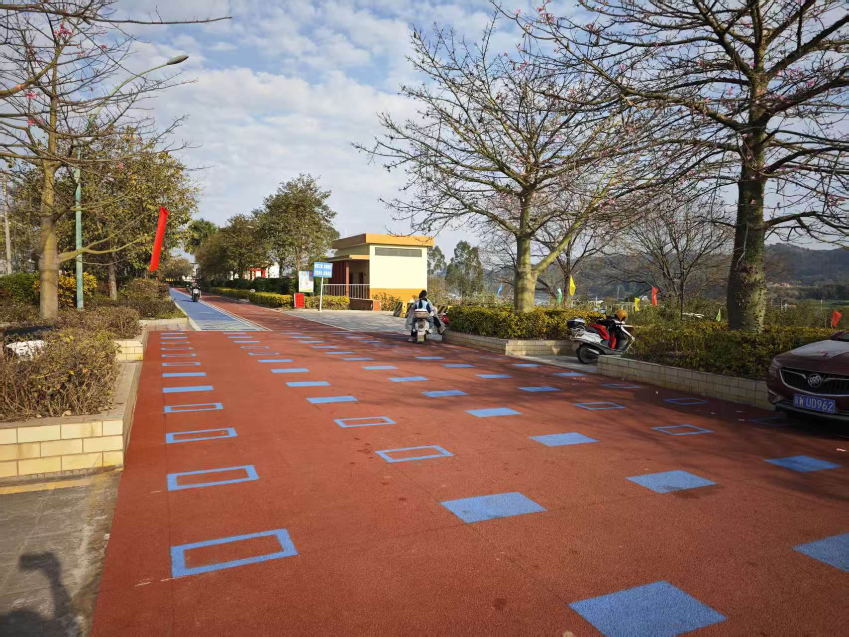 巧織“彩虹”,賦能添彩,激活民生空間。在確保堤防安全與生態(tài)功能的基礎(chǔ)上,為滿足群眾對美好濱水生活的向往,在堤頂精心鋪設(shè)了一條蜿蜒亮麗的“彩虹步道”,該步道選用環(huán)保陶瓷顆粒,以明快的色彩分段涂裝,路面實行騎行、步行分流,并通過標(biāo)識圖案展示我縣水文化、無核黃皮、自然資源、特色地標(biāo),將碧道線變?yōu)椤拔鹘适隆钡捏w驗線。步道串珠成鏈,將江濱公園、水文化公園、牛圩公園、自然灘涂有機(jī)融合,沿線優(yōu)化完善了休憩長椅、景觀照明、安全護(hù)欄及科普標(biāo)識牌,形成多層級空間體驗,滿足水位變化后群眾的休閑、運(yùn)動、觀景等多重需求。昔日功能單一的堤防,如今成為一個人與自然和諧共生的生態(tài)景觀,人們在這里可以緣水而行、遇景而停,盡情享受大自然的美好,濱水休閑廊道公共效益進(jìn)一步發(fā)揮。