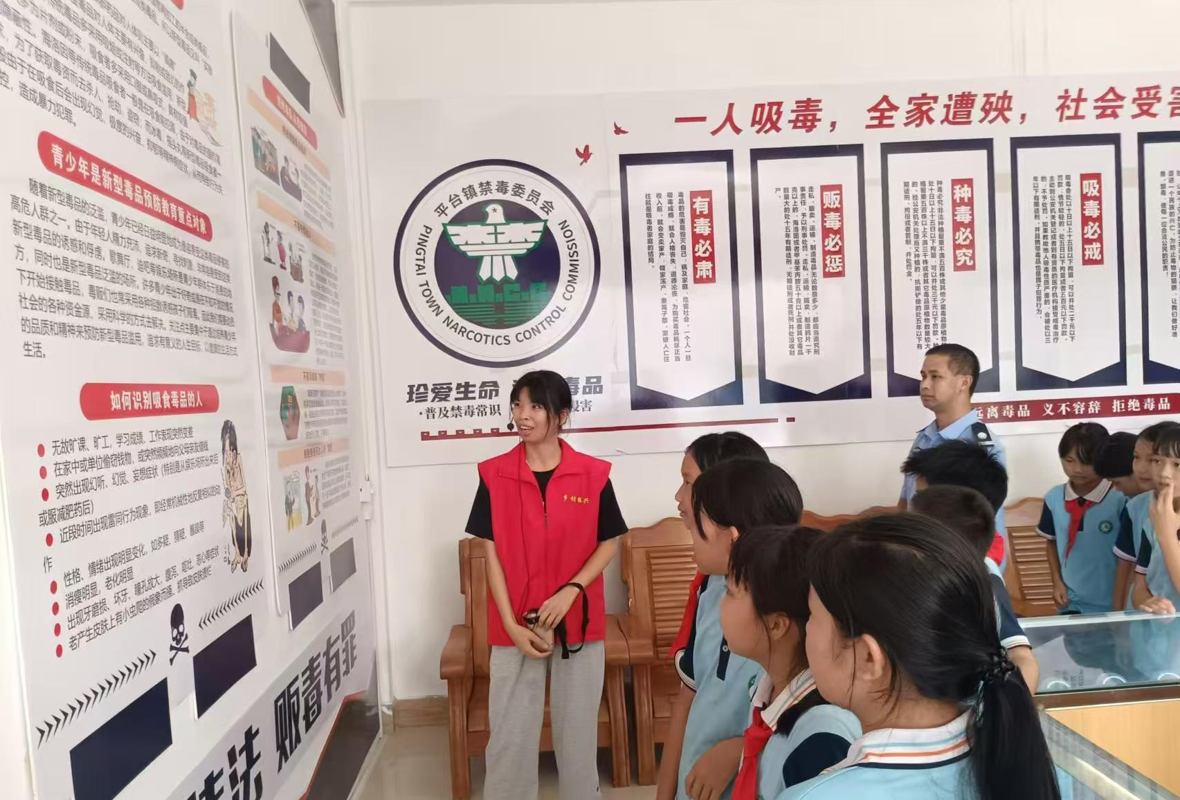在鎮(zhèn)禁毒宣傳教育基地,駐平臺(tái)鎮(zhèn)幫扶工作隊(duì)員化身“禁毒宣傳大使”,向師生們宣講了毒品的種類、毒品的危害及如何防范毒品等知識(shí)。并通過(guò)趣味問(wèn)答的形式,讓同學(xué)們?cè)谳p松愉快的氛圍中學(xué)習(xí)禁毒知識(shí),引導(dǎo)他們深刻認(rèn)識(shí)到毒品對(duì)個(gè)人、家庭及社會(huì)的嚴(yán)重危害。在場(chǎng)學(xué)生們認(rèn)真閱讀,不時(shí)與身邊的同學(xué)交流討論,毒品仿真模型的展示更是讓學(xué)生們直觀地認(rèn)識(shí)到毒品的形態(tài),增強(qiáng)了他們對(duì)毒品的辨別能力。