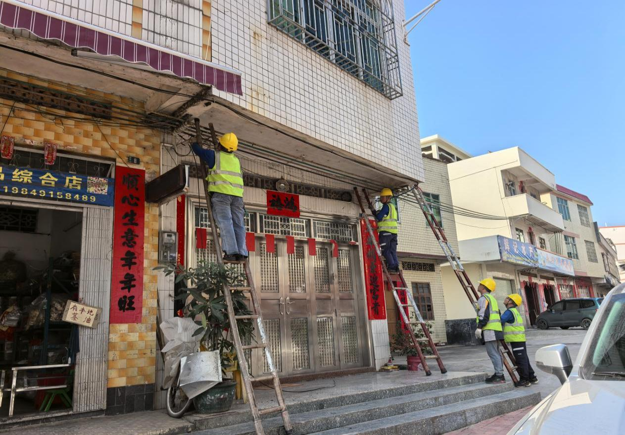 清理空中管線,擦亮圩鎮(zhèn)“天際線”。 針對縱橫交錯、雜亂下垂的電力、通信、網(wǎng)絡(luò)等線路,宋桂鎮(zhèn)協(xié)調(diào)供電、電信、廣電等單位開展“三線”專項整治。采取“清理廢線、歸并散線、捆扎理線、貼墻走線”相結(jié)合的方式,對主干道及背街小巷架空線路進(jìn)行集中規(guī)整。目前橫跨街道的“三線”均已落地,所有舊線、余纜均已清理完畢。各運營商均已做好各自的主線、入戶線規(guī)整工作,大幅消除了圩鎮(zhèn)的安全隱患,視覺空間明顯清朗。