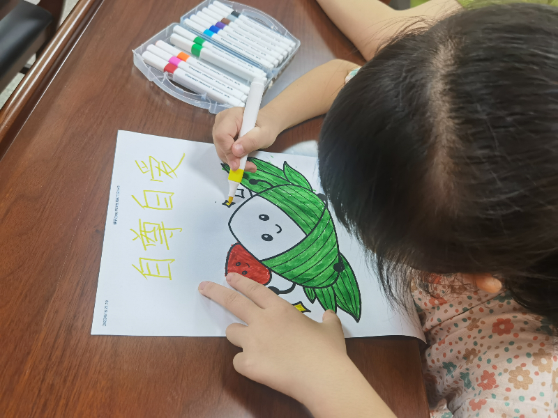 活動通過觀看《端午節(jié)的起源和由來》小視頻,親子家庭了解了端午節(jié)的來歷和意義,還通過邀請親子家庭代表朗讀古詩《和端午》《端午》等詩詞激發(fā)了親子家庭的愛國之情和民族自豪感。彩繪端午環(huán)節(jié)將活動推向高潮,家長和孩子一起動手描繪粽子,“相親相愛、自尊自愛、誠實(shí)守信、樂于助人、尊老愛幼”……孩子們在家長的引導(dǎo)下用心寫上家風(fēng)家訓(xùn)標(biāo)語在自己精心描繪的畫上,潛移默化感受中華民族的優(yōu)良家風(fēng),現(xiàn)場氣氛溫馨有愛。