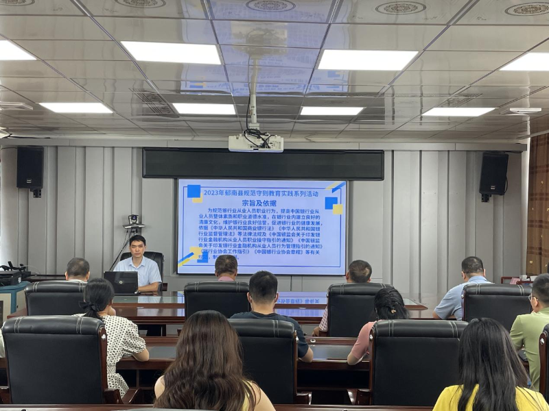 為進一步培育和踐行社會主義核心價值觀,提高銀行從業(yè)人員的職業(yè)素養(yǎng),6月29日,人民銀行郁南縣支行組織各銀行從業(yè)人員開展規(guī)范守則教育實踐活動——《銀行業(yè)從業(yè)人員職業(yè)操守和行為準則》專題講座。