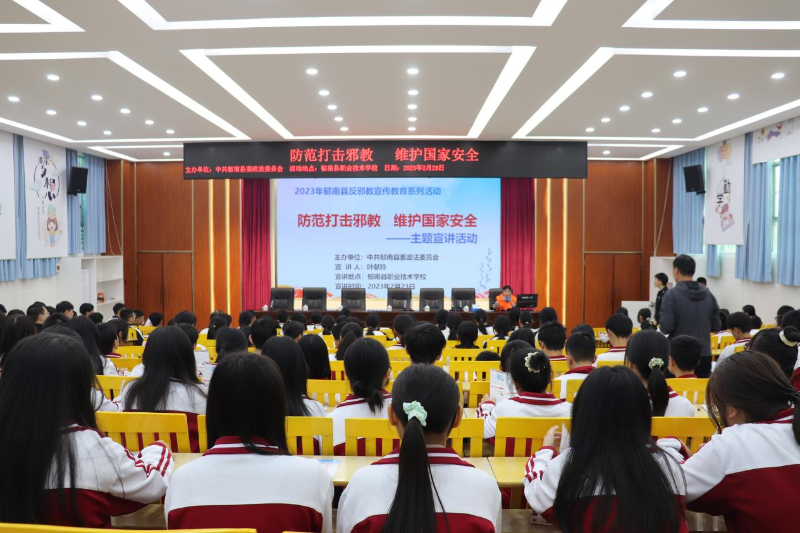 為全面貫徹落實(shí)總體國家安全觀,引導(dǎo)青少年牢固樹立國家安全意識,形成崇尚科學(xué)、反對邪教的健康理念,2月23日,郁南縣委政法委在郁南縣職業(yè)技術(shù)學(xué)校開展反邪教宣傳教育系列活動。