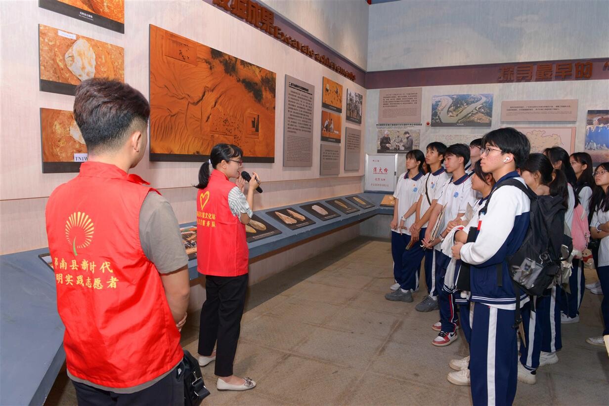 為進(jìn)一步貫徹落實(shí)黨的二十大精神和習(xí)近平總書記關(guān)于文物工作的重要論述,以及堅(jiān)持“保護(hù)第一,加強(qiáng)管理、挖掘價(jià)值、有效利用,讓文物活起來(lái)”的新時(shí)代文物工作方針,依托第47個(gè)“5·18”國(guó)際博物館日,為更好地踐行博物館日“博物館,可持續(xù)性與美好生活”的主題內(nèi)容,展現(xiàn)文化遺產(chǎn)及其相關(guān)領(lǐng)域知識(shí),提高中學(xué)生對(duì)文博知識(shí)的認(rèn)知、多了解磨刀山遺址的相關(guān)考古知識(shí),5月15日,由郁南縣文化廣電旅游體育局主辦,郁南縣文化圖書和博物館、郁南縣蔡朝焜紀(jì)念中學(xué)、郁南縣連灘中學(xué)、郁南縣河口鎮(zhèn)綜合文化站承辦的“尋跡磨刀山 品味古文化”研學(xué)活動(dòng)在河口鎮(zhèn)磨刀山遺址舉行,百多名師生參加了本次活動(dòng),發(fā)放各類宣傳小冊(cè)子200多份。
