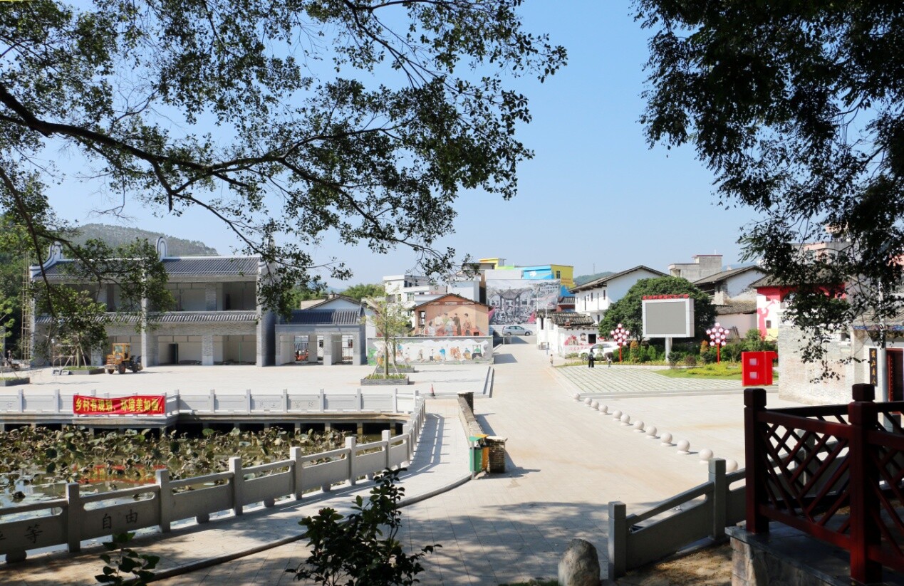 該景區(qū)坐落于桂圩鎮(zhèn)桂圩村委龍崗村,自然環(huán)境優(yōu)美,天然獨(dú)厚的綠色資源,充分利用村內(nèi)的香樟古樹、荷池古井等資源因地制宜地建設(shè)了龍頭山森林公園,盤活了村內(nèi)的綠色資源;全面整治人居生態(tài)環(huán)境,對村內(nèi)公共設(shè)施進(jìn)行新建、擴(kuò)建和修葺,桂圩鎮(zhèn)桂河(龍崗段)一河兩岸升級改造,基本實(shí)現(xiàn)了“村莊園林化、庭院花園化、道路林蔭化”。通過深度挖掘一批杰出革命人物舊居進(jìn)行活化利用,并在沿途閑置的民居外墻上進(jìn)行紅色革命故事彩繪,以“紅色資源”為核心區(qū)通過打造革命紀(jì)念館、黨建文化廣場、革命烈士故居、紅色故事墻繪來集中展示村落紅色文化精神內(nèi)涵。