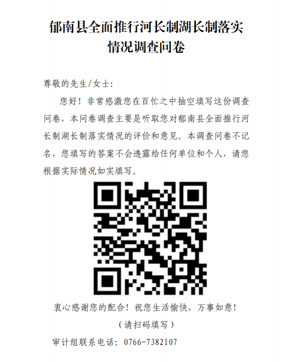 郁南縣全面推行河長(zhǎng)制湖長(zhǎng)制落實(shí)情況調(diào)查問(wèn)卷