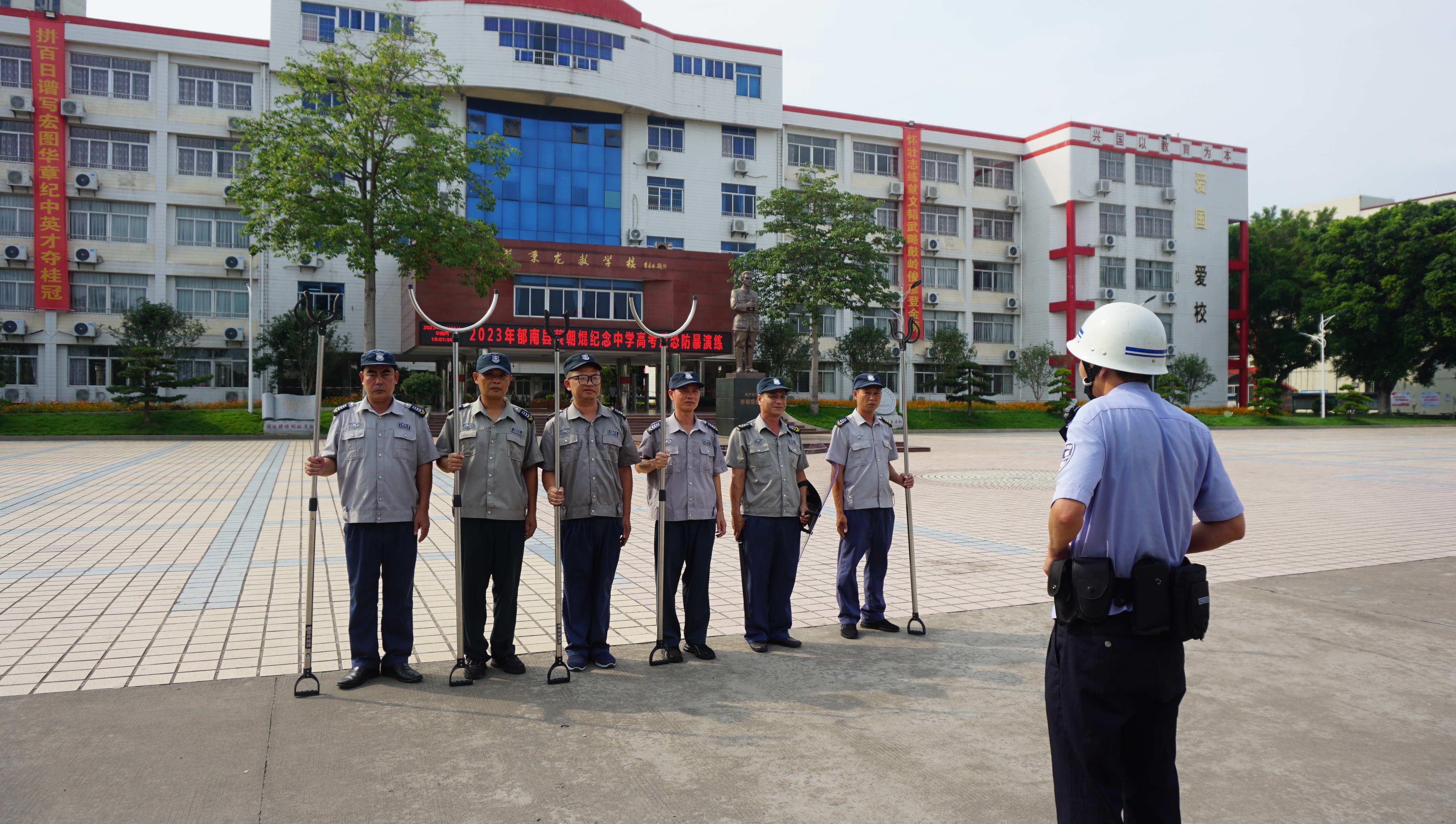 2023年高考將至,為了切實(shí)做好高考考試組織工作,確保工作萬(wàn)無(wú)一失,實(shí)現(xiàn)“健康、平安、公平、誠(chéng)信、暖心”高考五大目標(biāo)。6月1日下午,蔡朝焜紀(jì)念中學(xué)舉行了2023年高三考生高考進(jìn)場(chǎng)暨防恐、防暴應(yīng)急疏散演練活動(dòng)。 活動(dòng)開(kāi)始前,學(xué)校成立了工作領(lǐng)導(dǎo)小組,精心策劃,認(rèn)真組織,扎實(shí)開(kāi)展演練活動(dòng),確保了演練活動(dòng)順利進(jìn)行。 首先進(jìn)行的是防恐、防暴應(yīng)急疏散演練活動(dòng)。為確保演練效果,學(xué)校邀請(qǐng)了郁南縣都城鎮(zhèn)城北派出所領(lǐng)導(dǎo)、民警到場(chǎng)指導(dǎo)培訓(xùn),學(xué)校護(hù)校隊(duì)全體隊(duì)員參加了本次演練。 在演練中,城北派出所警官現(xiàn)場(chǎng)講解了校園反恐防暴技能理論,并現(xiàn)場(chǎng)演示了盾牌、警棍、鋼叉等安全防暴器材的使用方法和技巧。 現(xiàn)場(chǎng)模擬訓(xùn)練。由派出所警官扮演手持兇器企圖闖入校園的“歹徒”,一名護(hù)校隊(duì)隊(duì)員迅速報(bào)警,其余隊(duì)員使用盾牌、警棍、鋼叉等器材阻止“歹徒”進(jìn)入校園。接到報(bào)警后,城北派出所警官迅速到場(chǎng),并果斷、堅(jiān)決、迅速地將“歹徒”控制住。 我校按照2023年普通高考模擬演練工作要求,進(jìn)一步規(guī)范考場(chǎng)管理,把好考生入口關(guān),首次在考點(diǎn)使用“智能安檢門(mén)”設(shè)備,規(guī)范人員入場(chǎng)安檢工作,從源頭杜絕電子設(shè)備進(jìn)入考點(diǎn)考場(chǎng)。 演練中,考生均在“考點(diǎn)”入口處先接受人工手持金屬探測(cè)儀安檢,無(wú)異常情況后進(jìn)入“智能安檢門(mén)”,無(wú)報(bào)警聲響方可進(jìn)入考點(diǎn);若出現(xiàn)異常報(bào)警則再次接受人工手持金屬探測(cè)儀安檢并再次通過(guò)安檢門(mén),無(wú)異常報(bào)警,且無(wú)其他違禁物品方可進(jìn)入“考場(chǎng)”參加考試。 本次演練活動(dòng),不僅進(jìn)增強(qiáng)了學(xué)校安保人員的反恐意識(shí)和處置突發(fā)事件的能力,提高了安保人員的應(yīng)急處置技巧,還進(jìn)一步增強(qiáng)了學(xué)生誠(chéng)信參考意識(shí),能有效幫助師生熟悉安檢流程和要求,為確保2023年高考考生人身安全、高考安全平穩(wěn)順利進(jìn)行奠定了堅(jiān)實(shí)基礎(chǔ)。