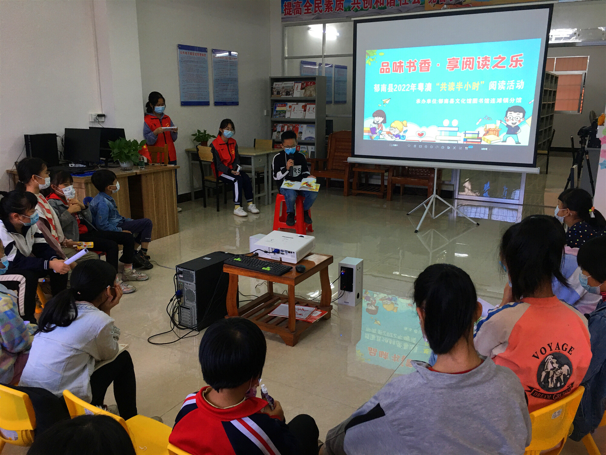 為迎接黨的二十大,充分發(fā)揮圖書館作為文化傳播主力軍的作用,推動全民閱讀深入開展,4月23日,郁南縣文化圖書和博物館分別在縣圖書館總館、縣文化館圖書館連灘鎮(zhèn)分館、河口鎮(zhèn)和都村粵書吧設置了3個共讀點,共同舉辦“品味書香·享閱讀之樂”——2022粵澳“共讀半小時”閱讀活動,活動共有100余人參加。