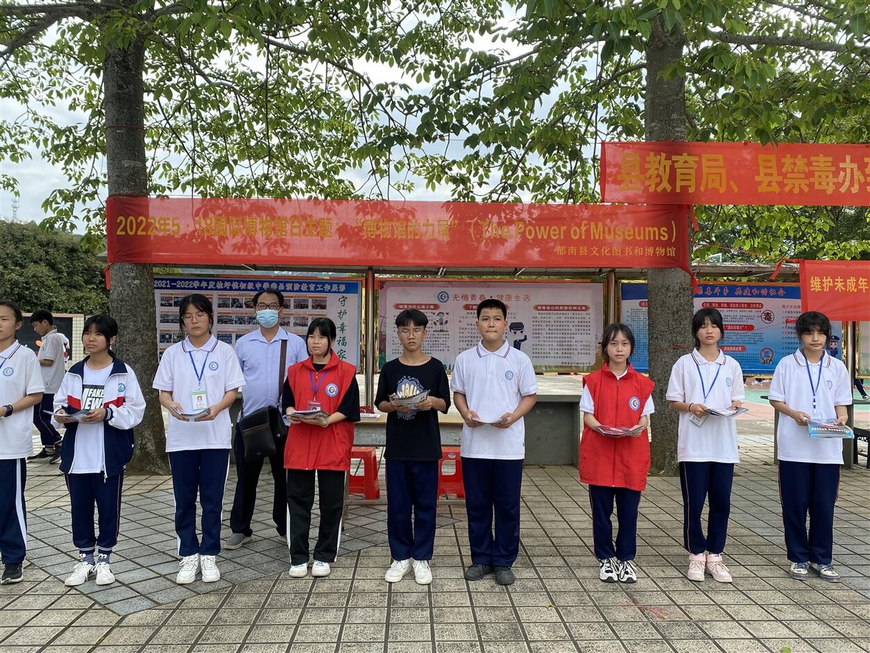 為全面貫徹落實黨的十九屆六中全會精神,依托第46個“5·18”國際博物館日,廣泛宣傳國際博物館日的主題內(nèi)容以及深層次含義,發(fā)揮博物館教育功能,進一步提升未成年人對文物文博、文化遺產(chǎn)保護傳承的認知度和責任感,5月19日,由郁南縣文廣旅體局指導,縣文化圖書和博物館、縣文化館圖書館總分館主辦,桂圩鎮(zhèn)初級中學承辦,在該縣桂圩鎮(zhèn)初級中心開展“2022年5·18國際博物館日暨歷史文化進校園文化志愿服務活動”。通過活動形式,搭建博物館與群眾溝通互動平臺,充分發(fā)揮博物館在堅持道路自信、理論自信、制度自信、文化自信中的陣地作用。