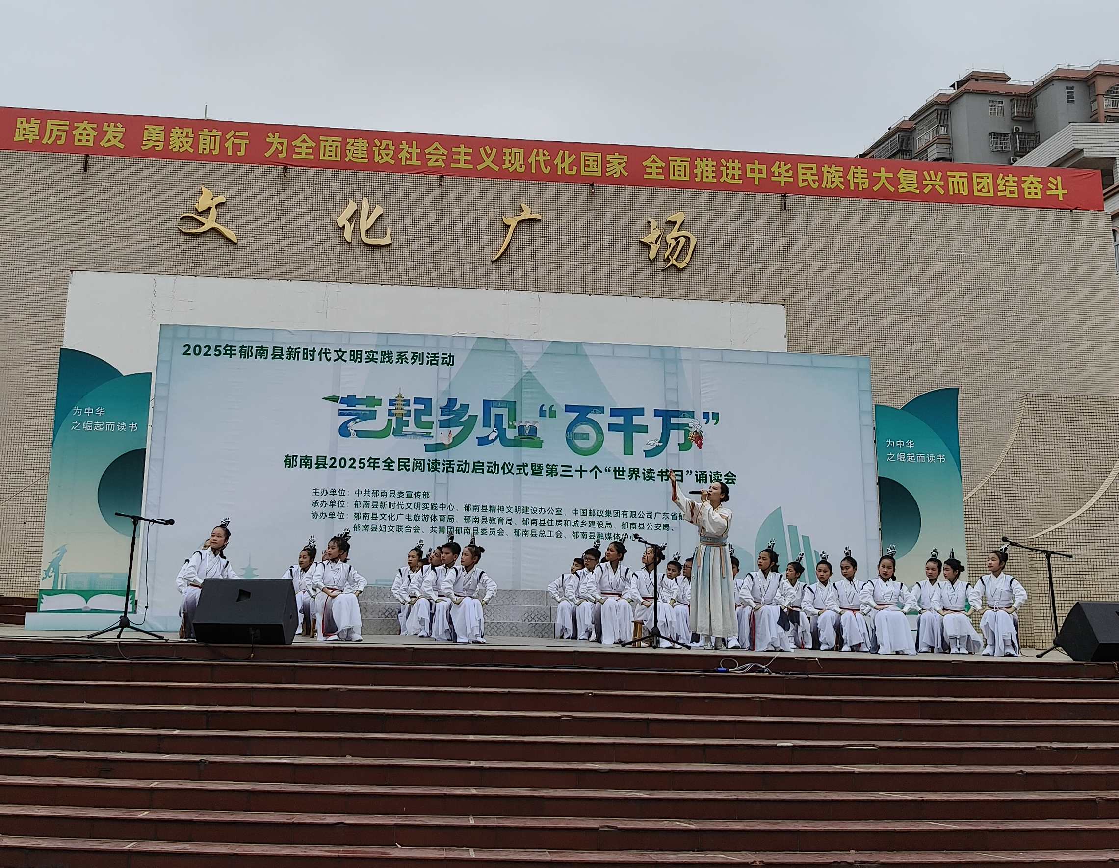 活動以“1+N”形式舉辦,即:“1”個共讀主會場,設于當天開展郁南縣2025年全民閱讀活動啟動儀式暨第三十個“世界讀書日”誦讀會的郁南縣文化廣場;以及“N”個共讀點,即郁南縣圖書館、13個鎮(zhèn)圖書館分館、郁南縣蔡朝焜紀念中學等多個共讀點。