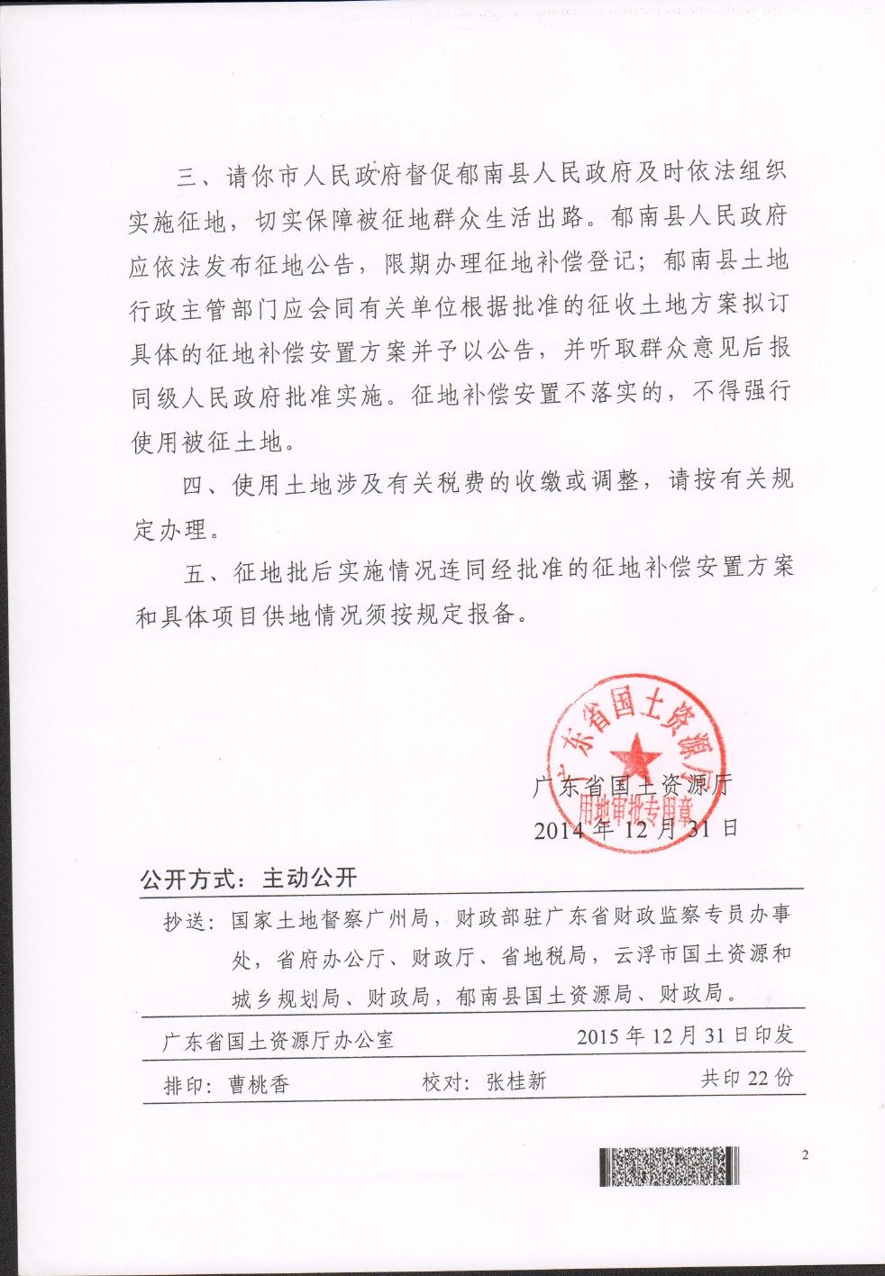 廣東省國(guó)土資源廳關(guān)于郁南縣2014年度第二批次城鎮(zhèn)建設(shè)用地的批復(fù)
